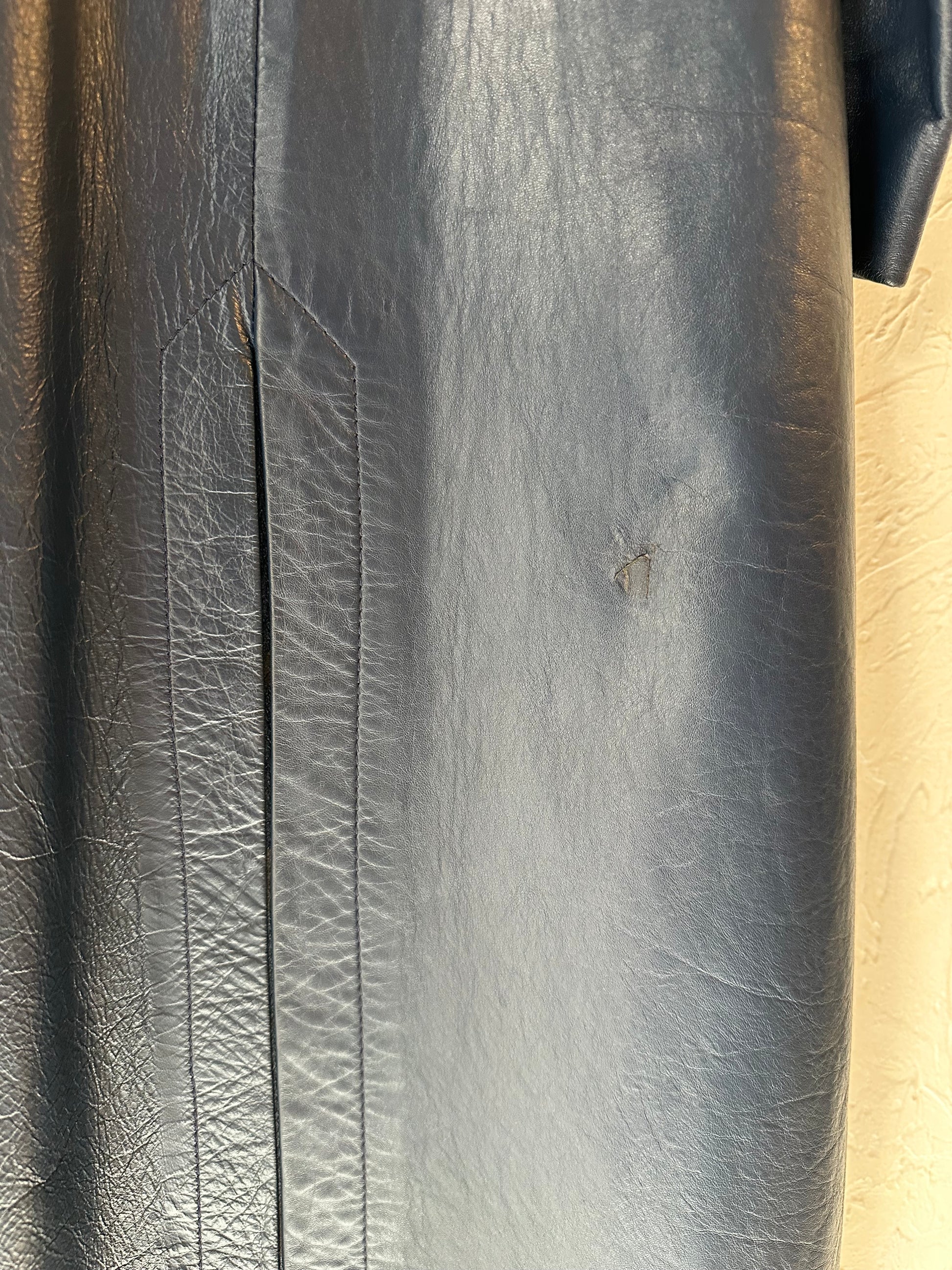 70s ‘Leather Factory’ Blue Leather Trench Coat / Medium