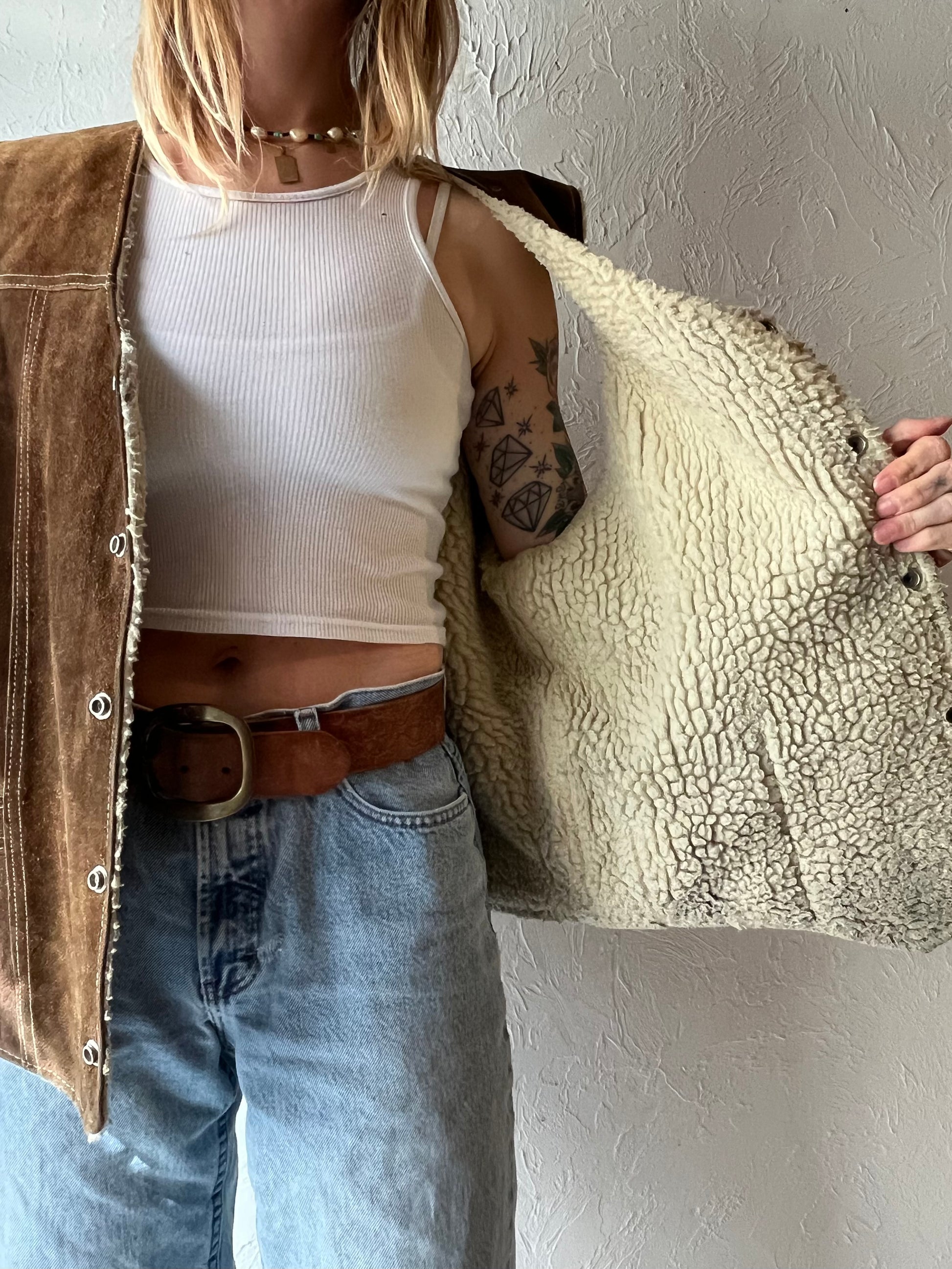 70s ‘Zamher’ Suede Shearling Lined Vest / Large