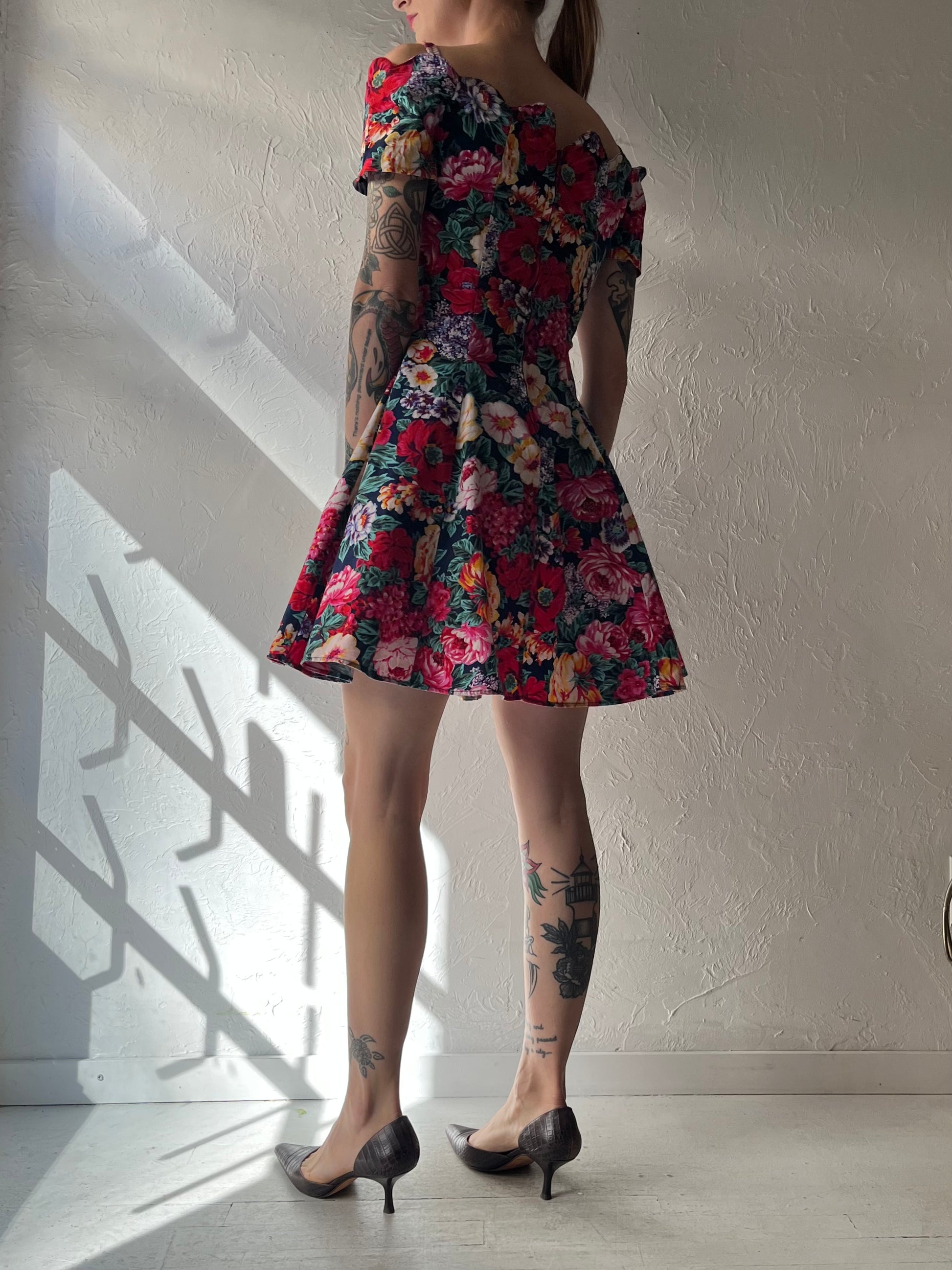 80s 'Damatix' Floral Cotton Mini Dress / Small