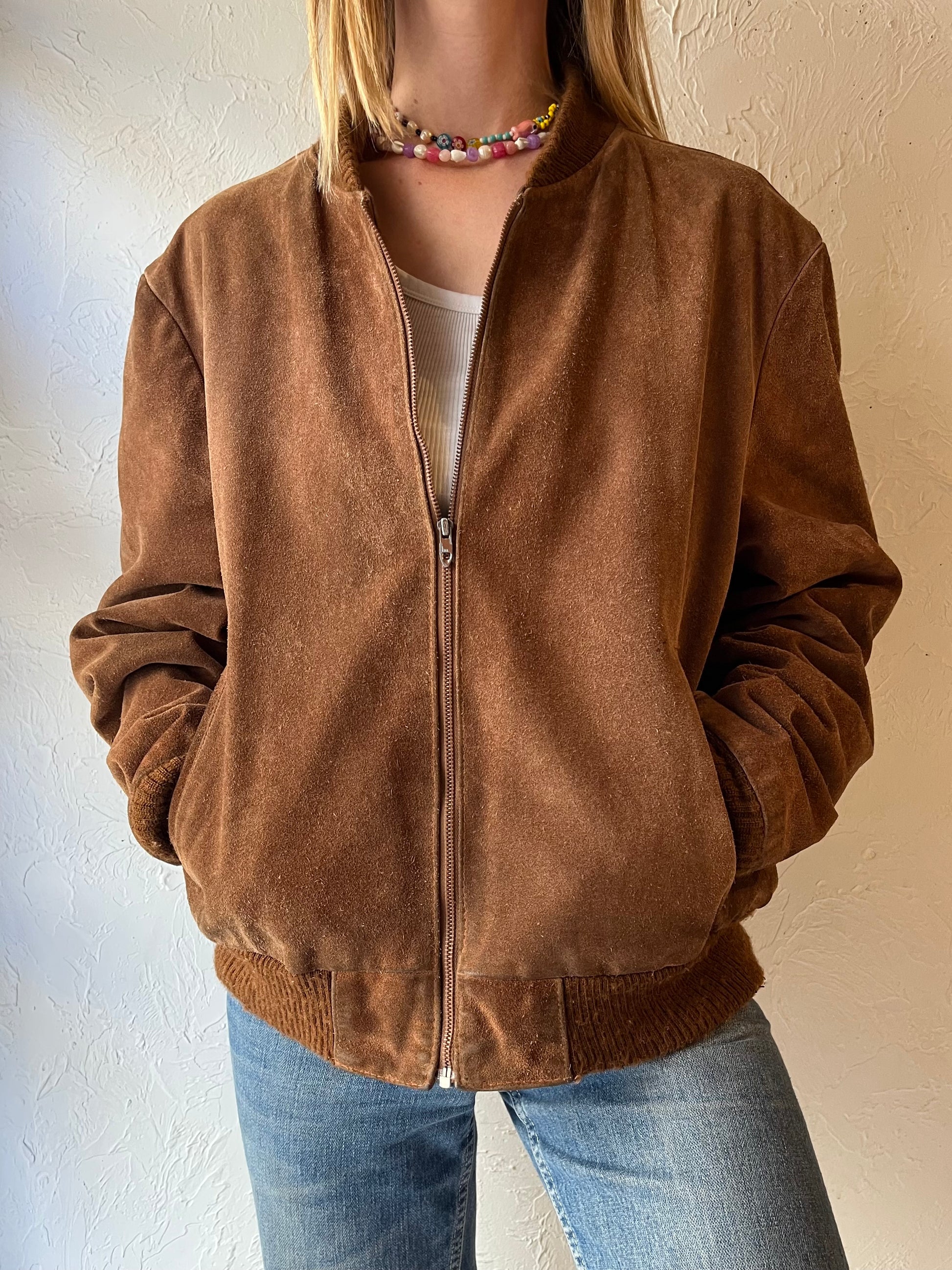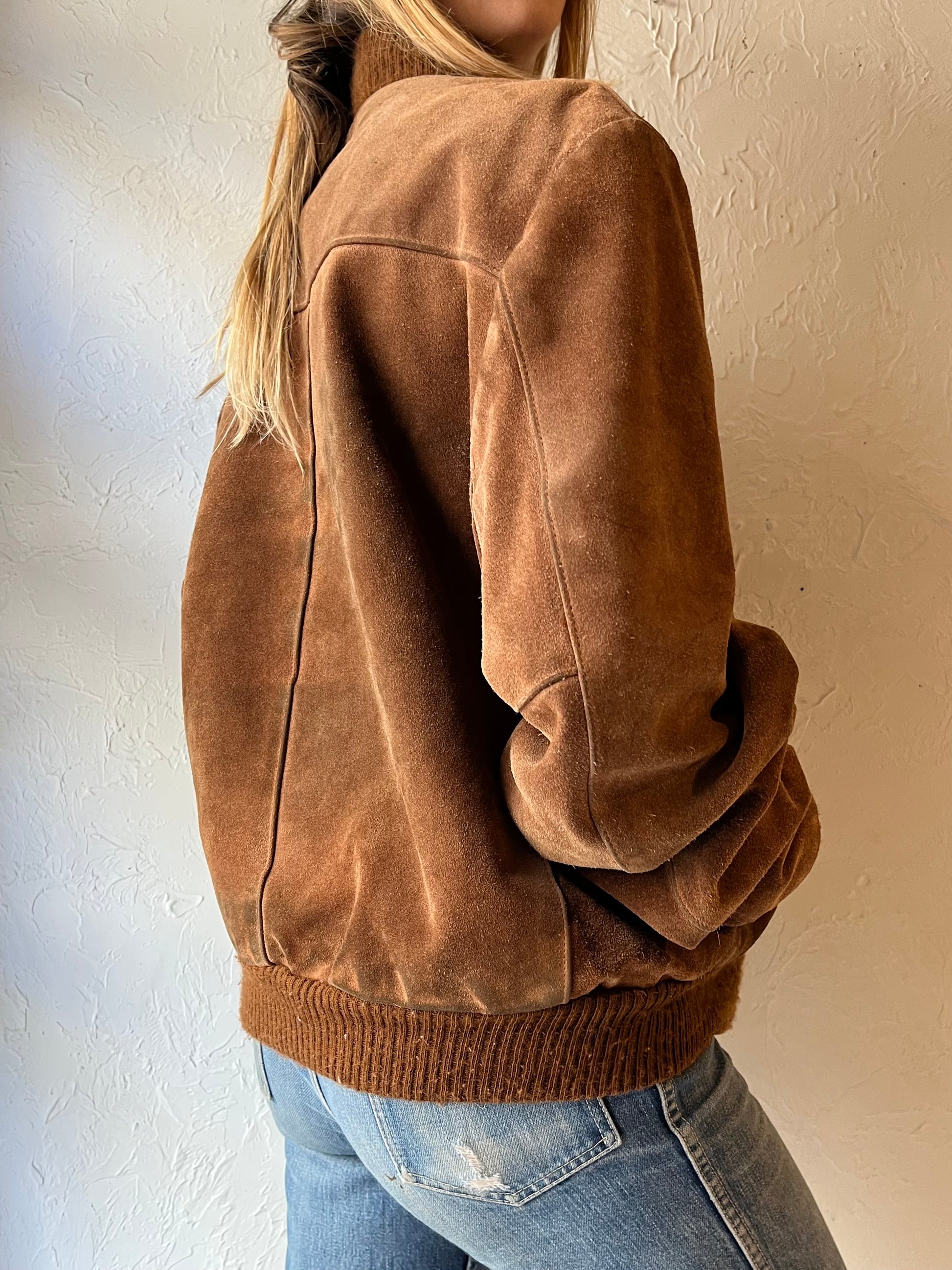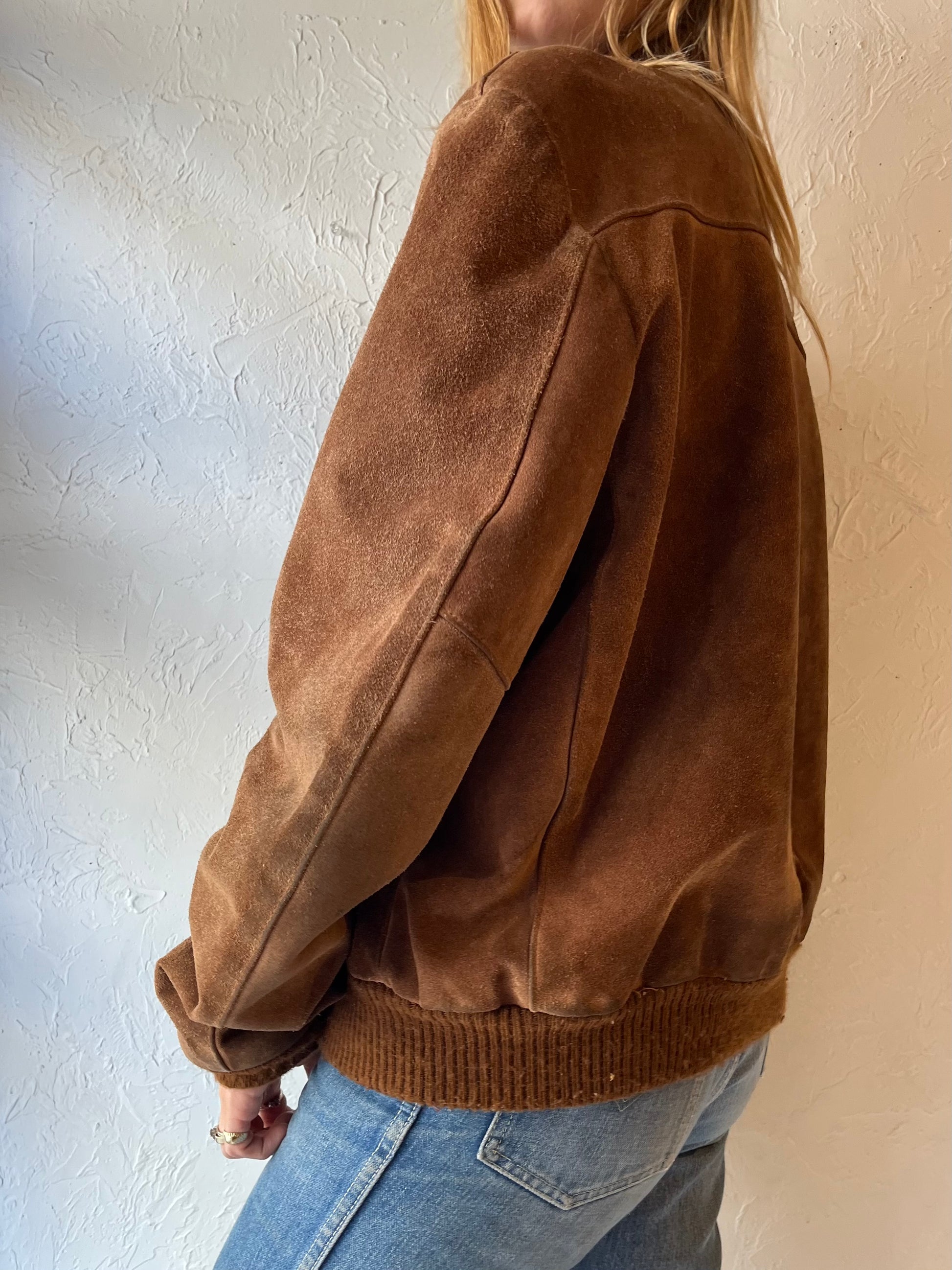 80s ‘Genuine Leather’ Brown Suede Leather Bomber / Medium