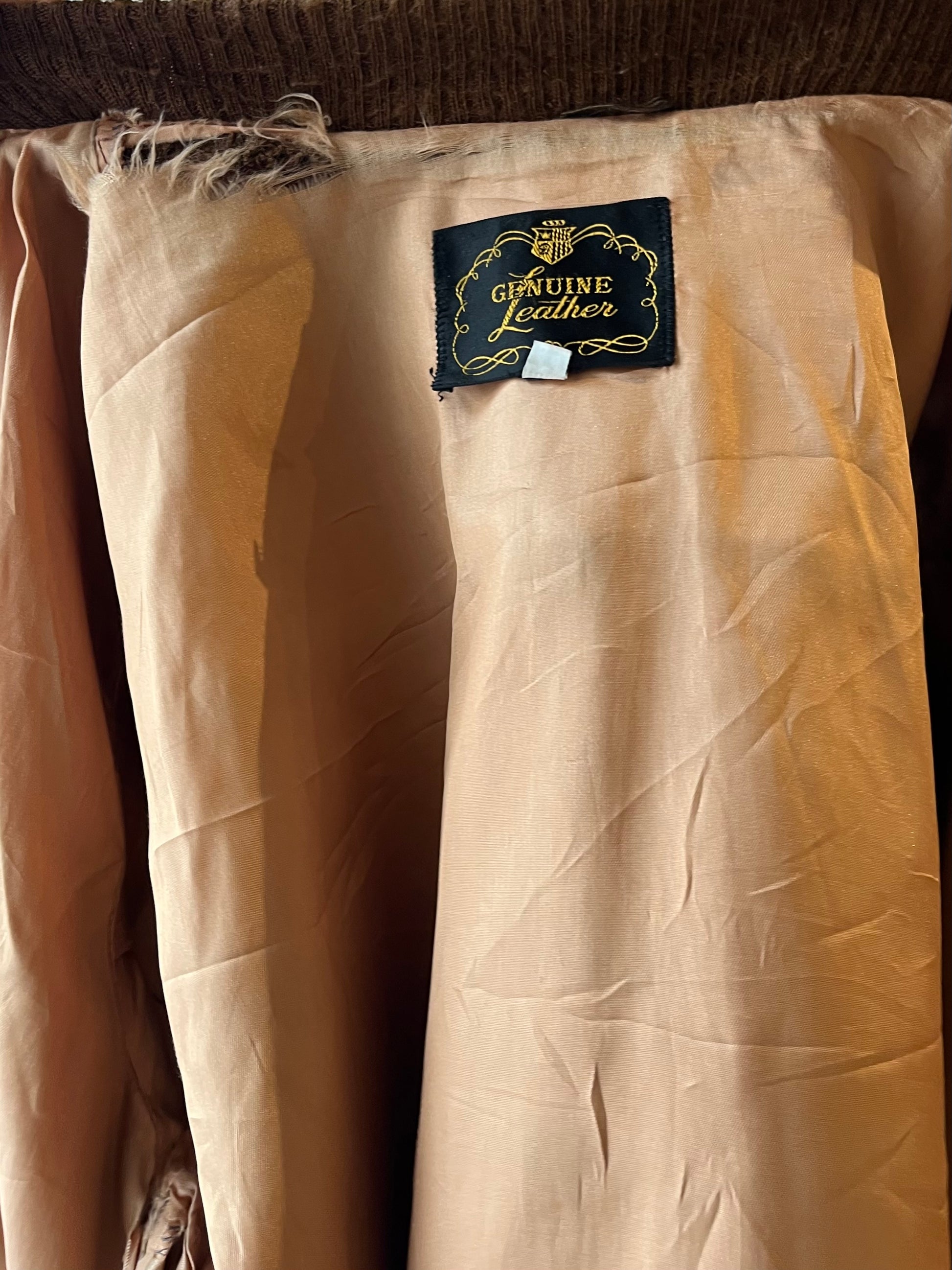 - Vintage 80s Genuine Leather Brown Suede Leather Bomber