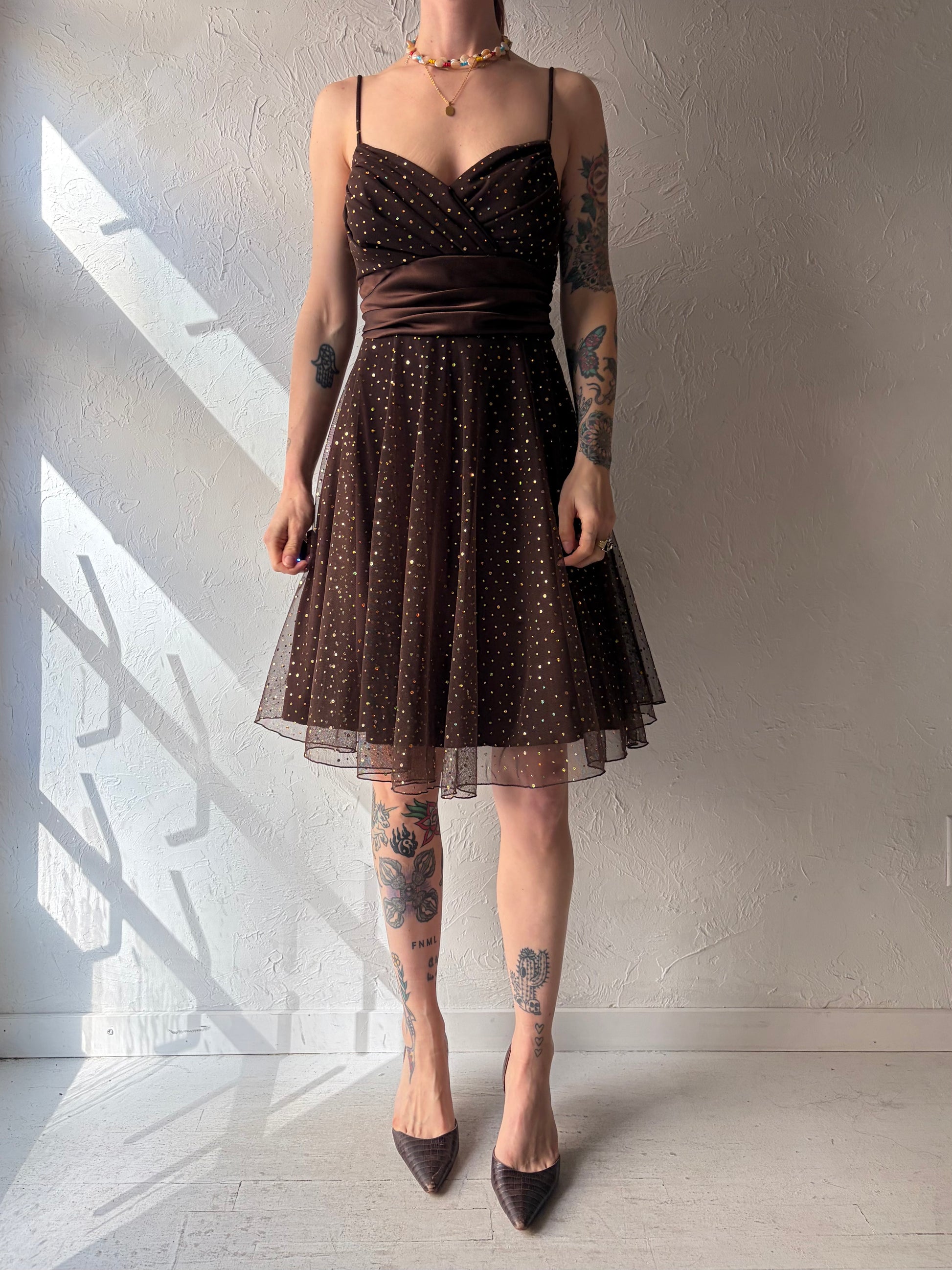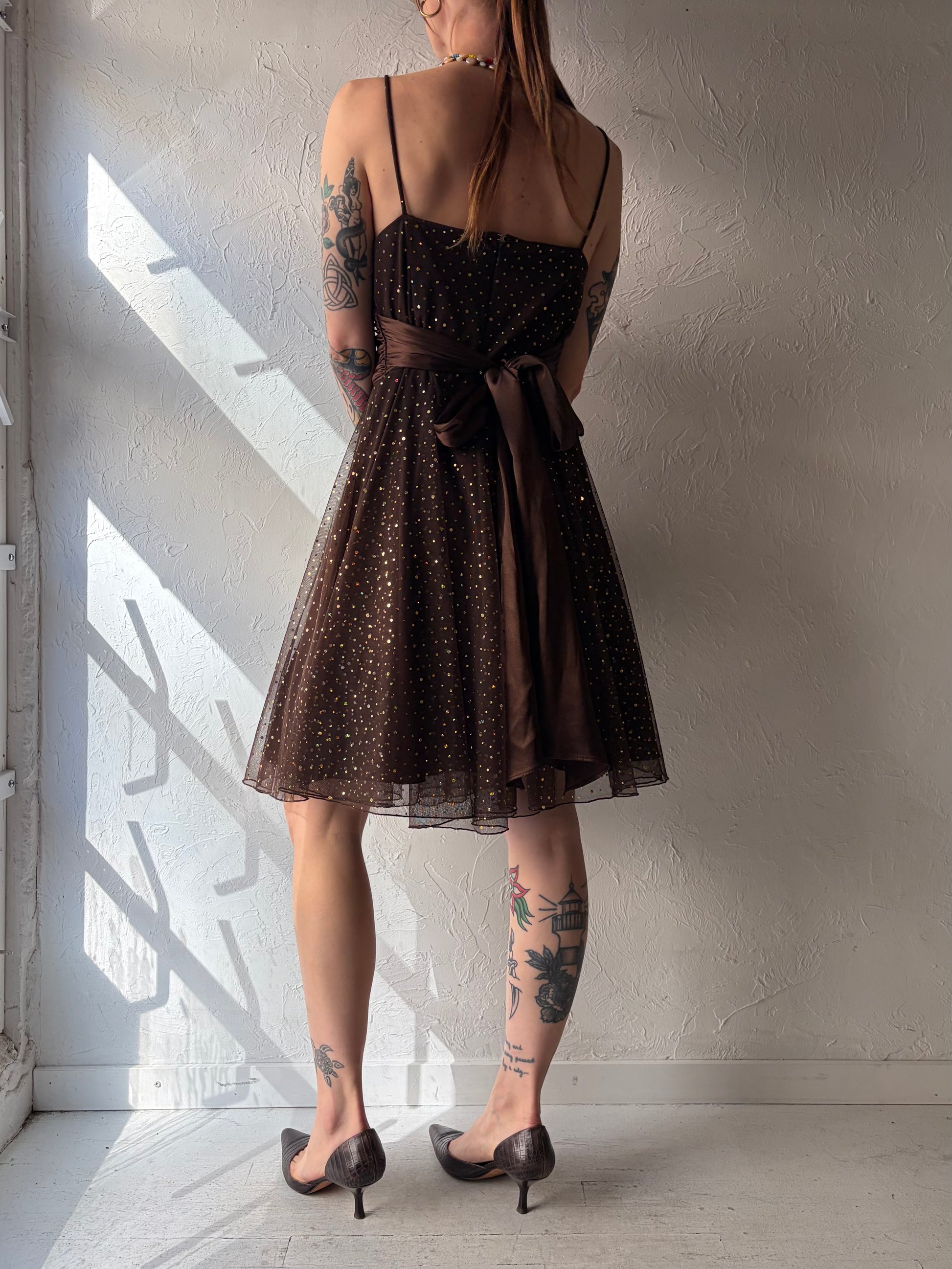 80s 'Jessica' Brown Formal Mini Dress / Medium
