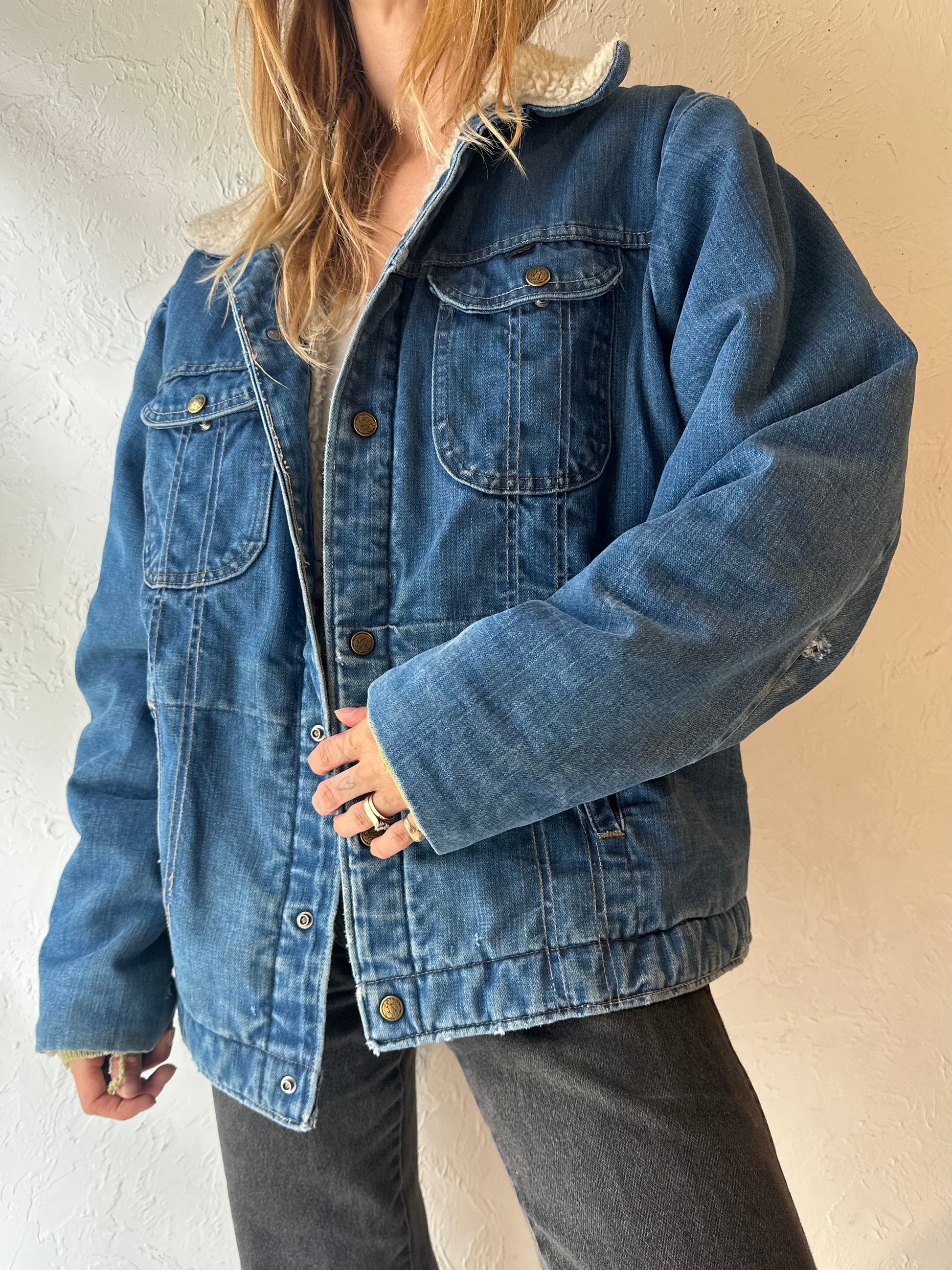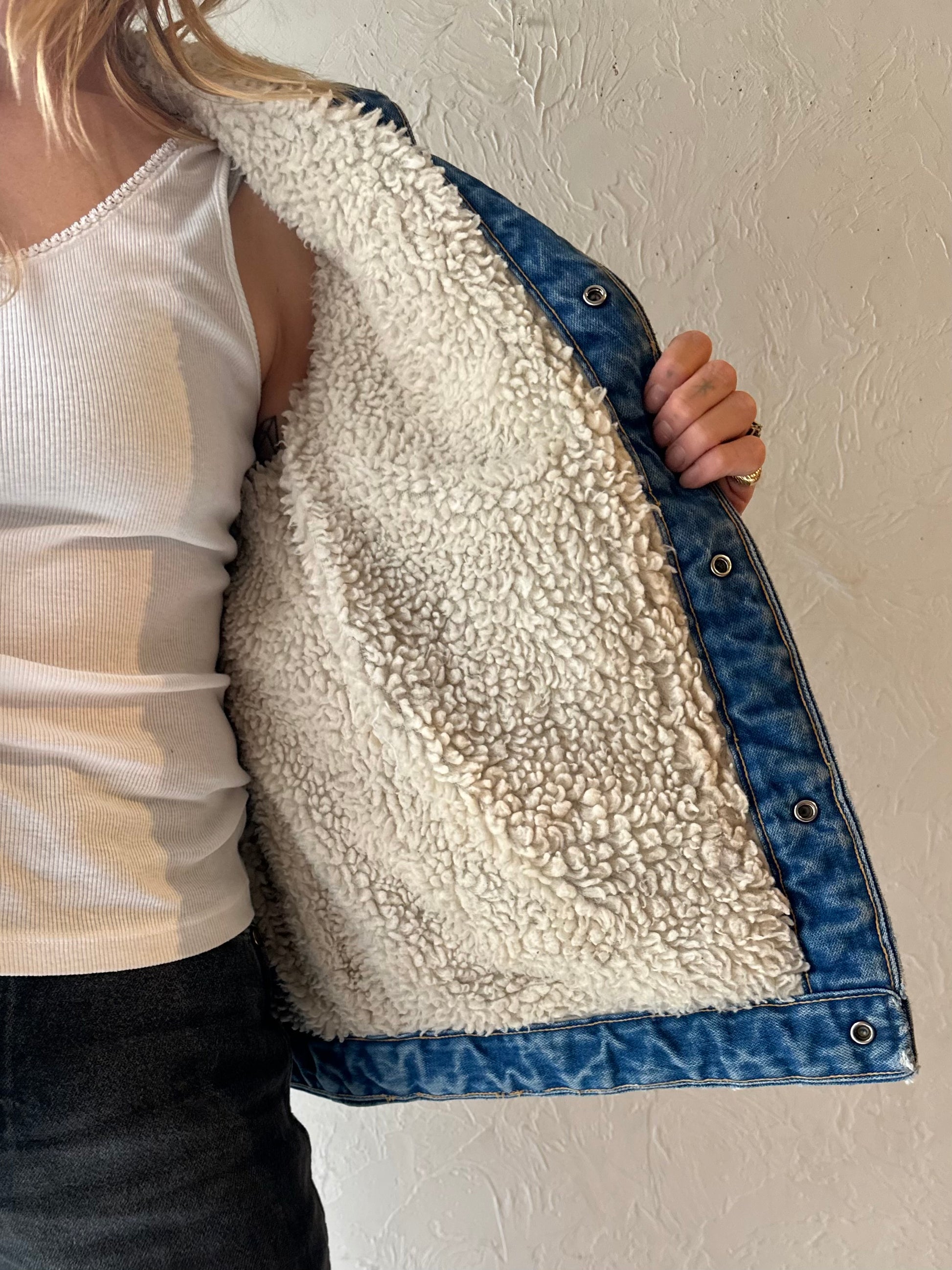 80s ‘Key’ Faux Shearling Lined Denim Jacket / Large