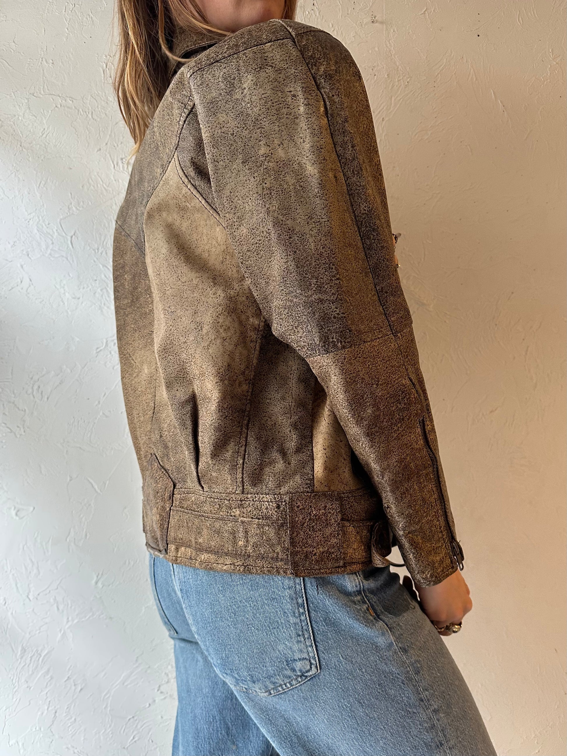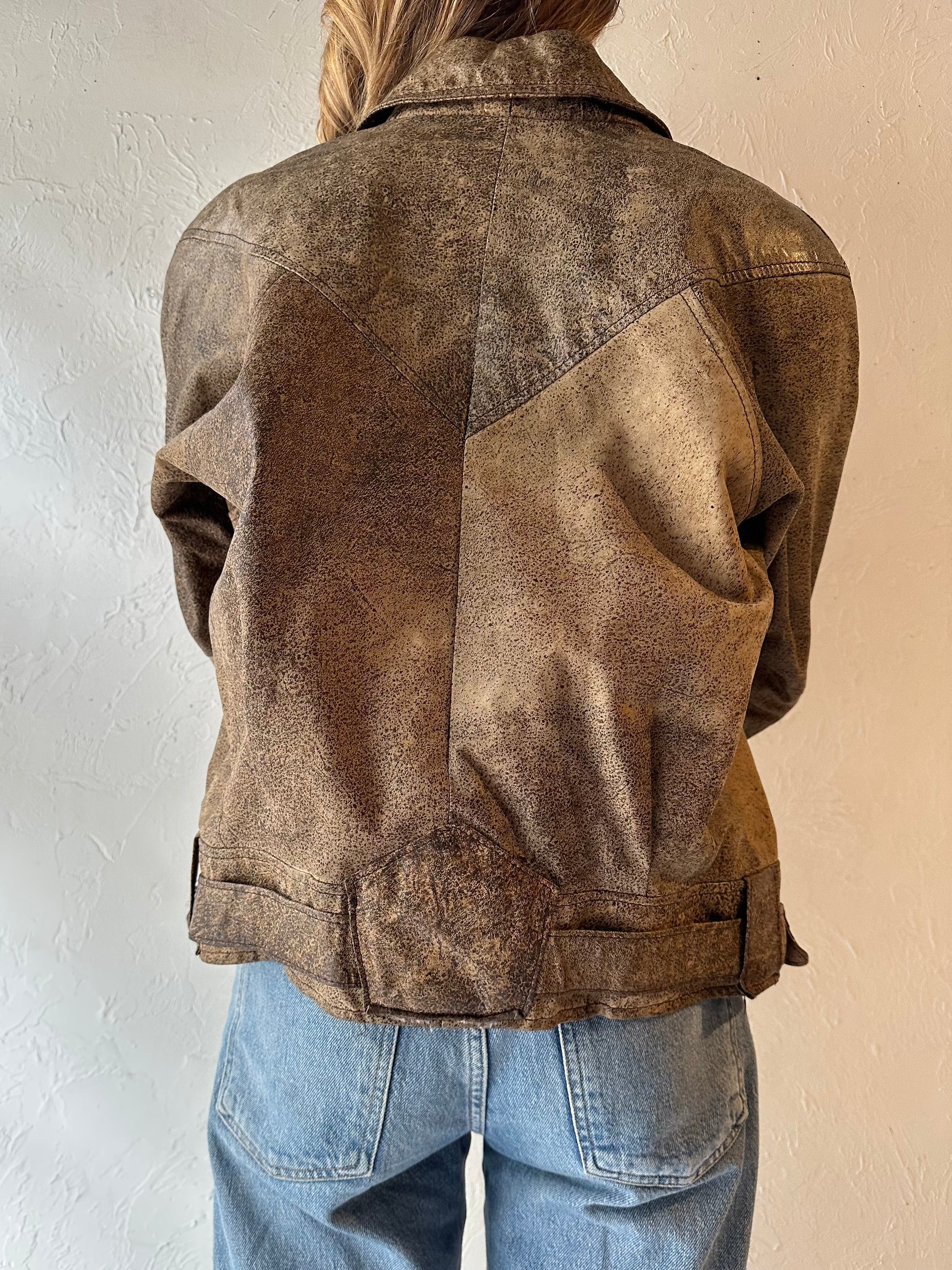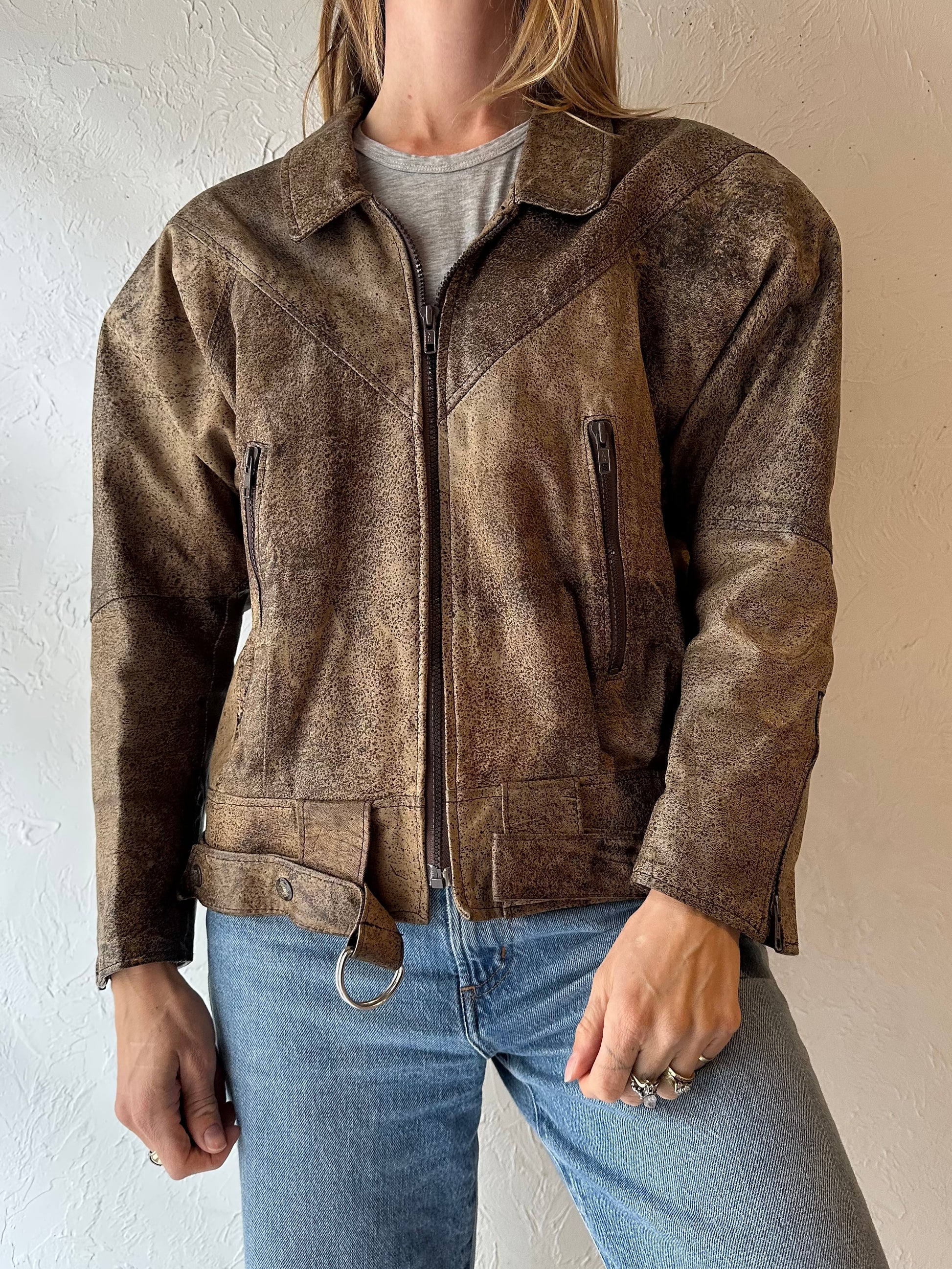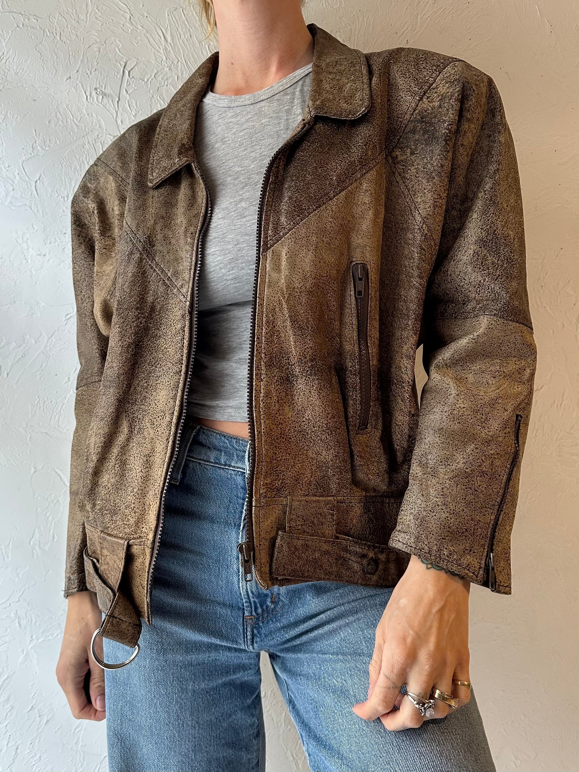 80s ‘Leather Ranch’ Brown Leather Bomber Jacket / Small