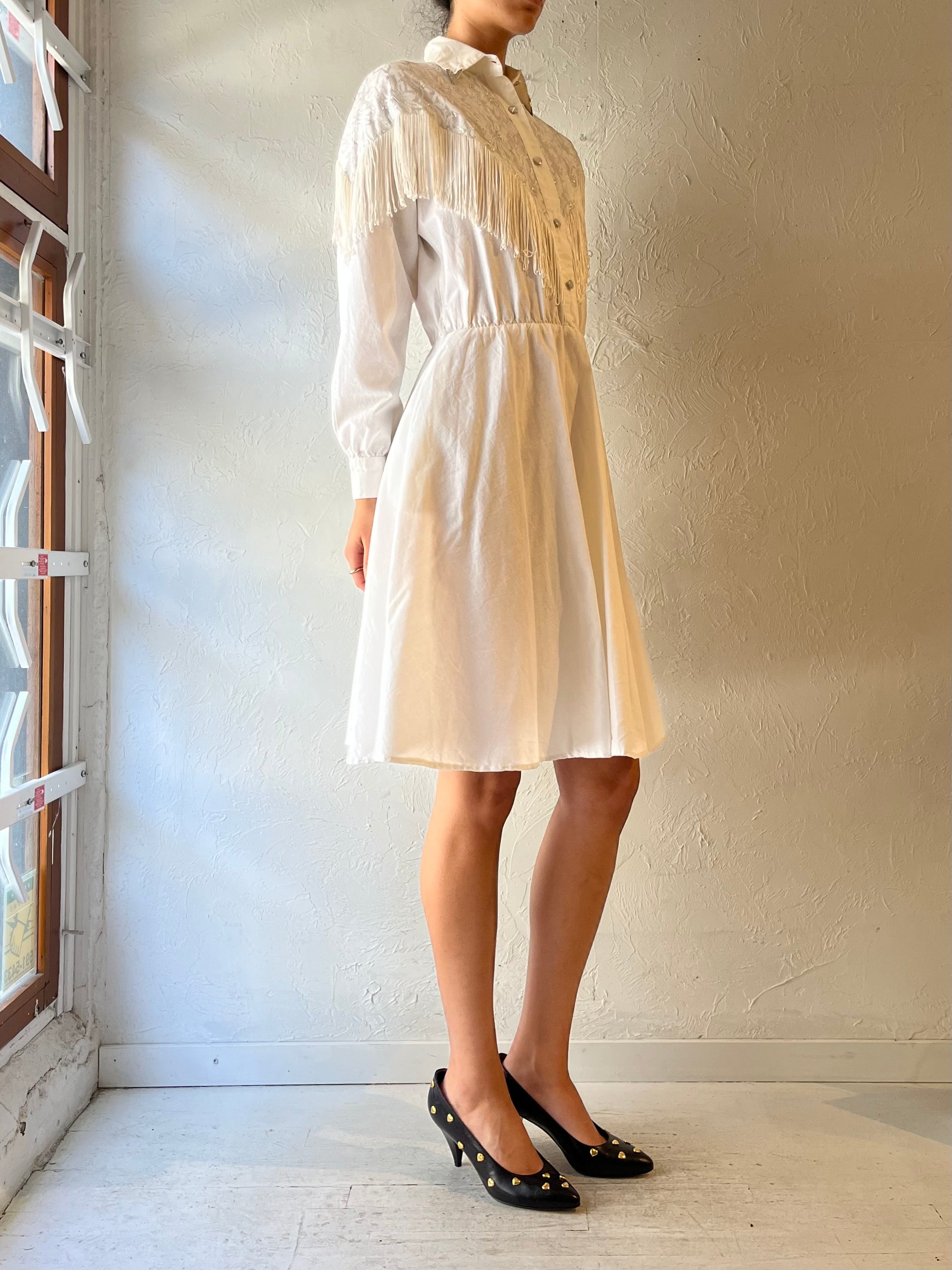 80s 'Lila Suilty' White Fringe Western Dress / Small