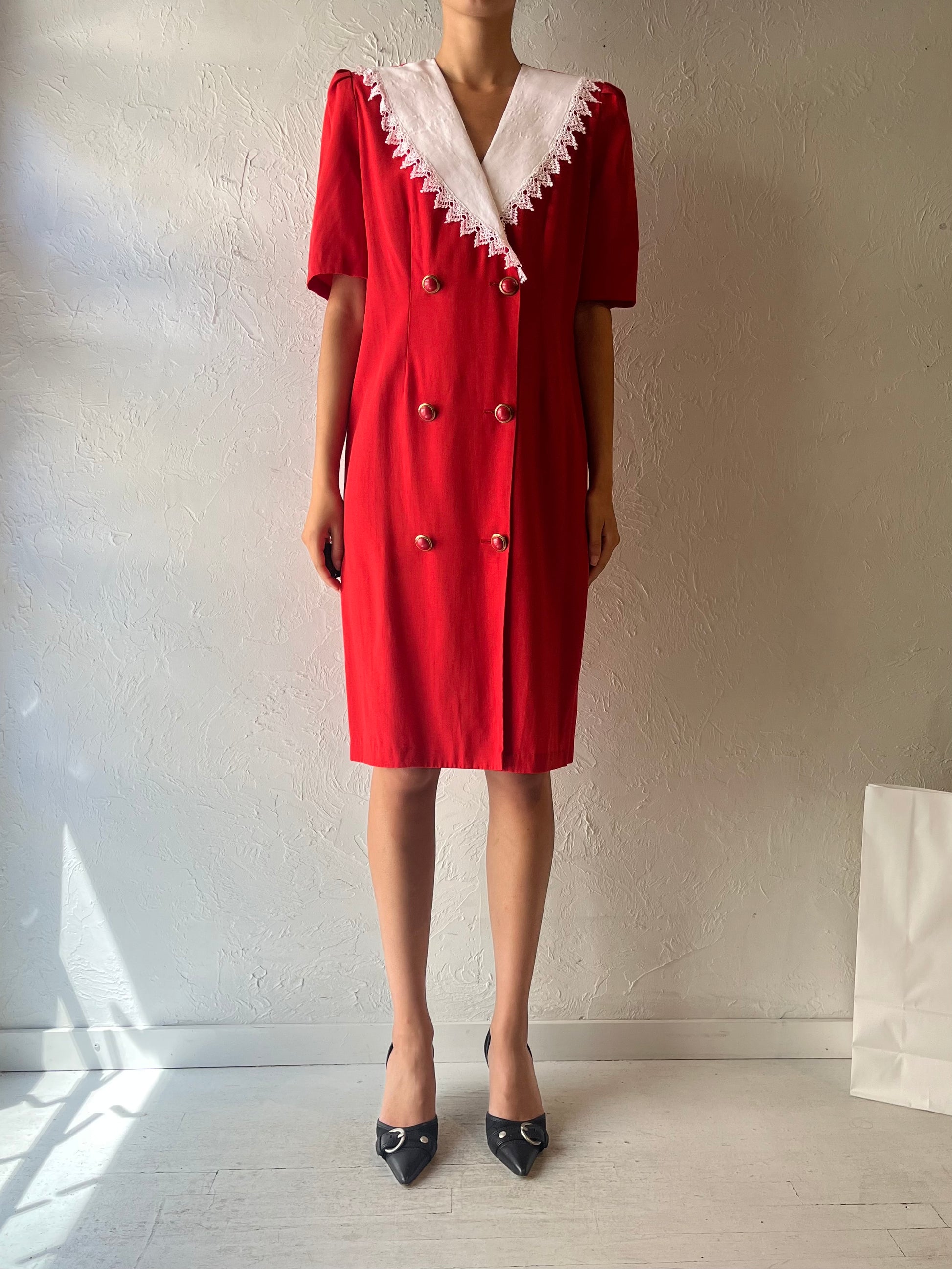 - Vintage 80s Nancy G Red Collared Midi Dress