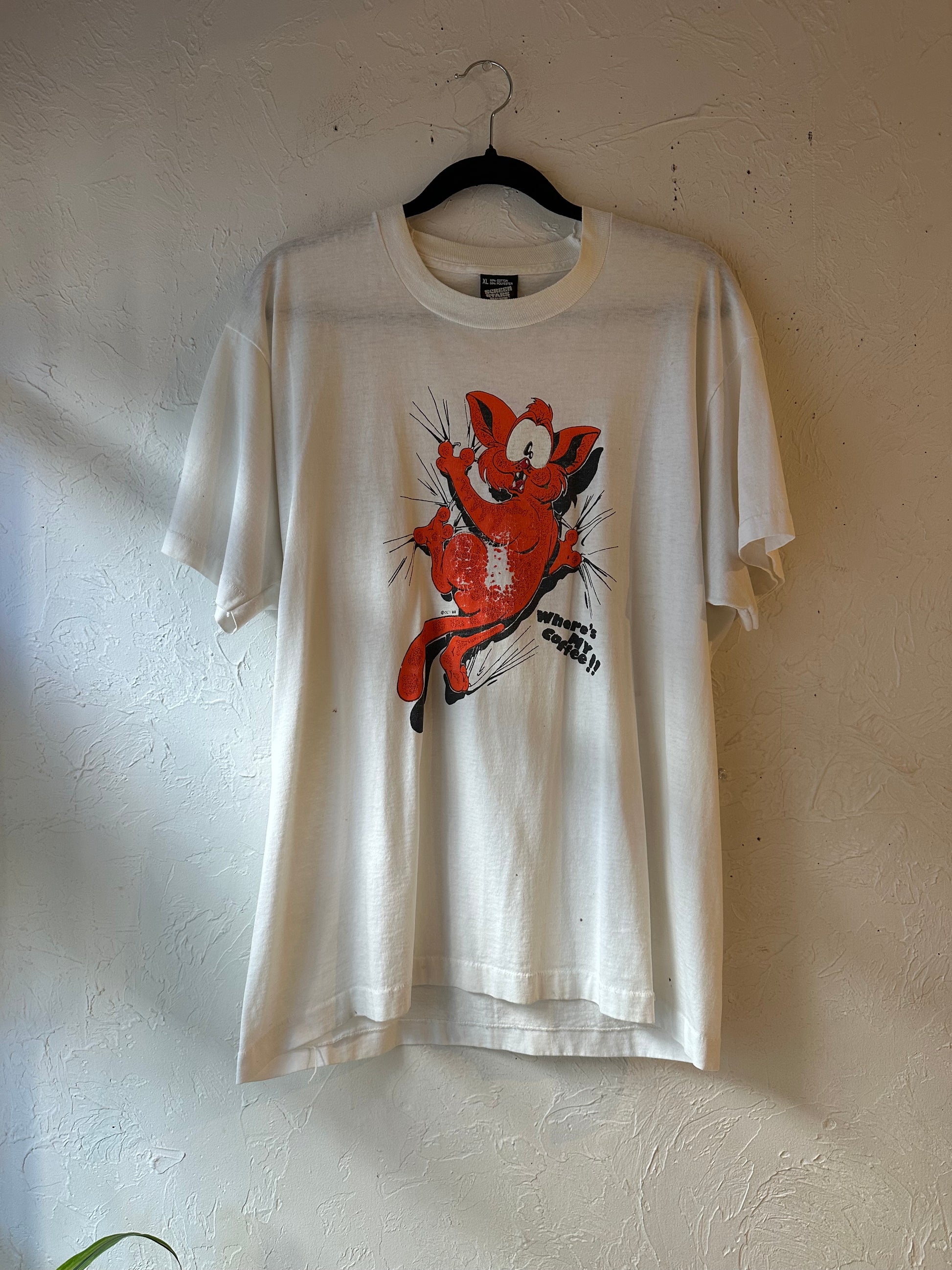 80s 'Screen Stars' Cat Coffee T-Shirt / XL