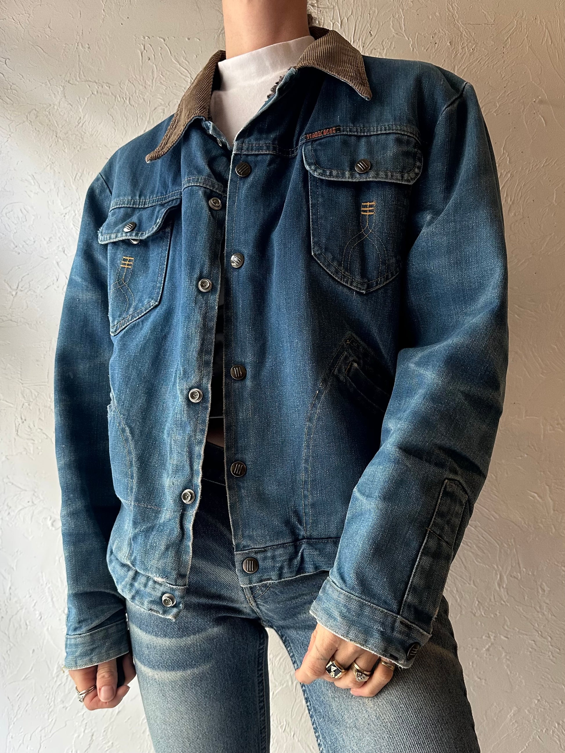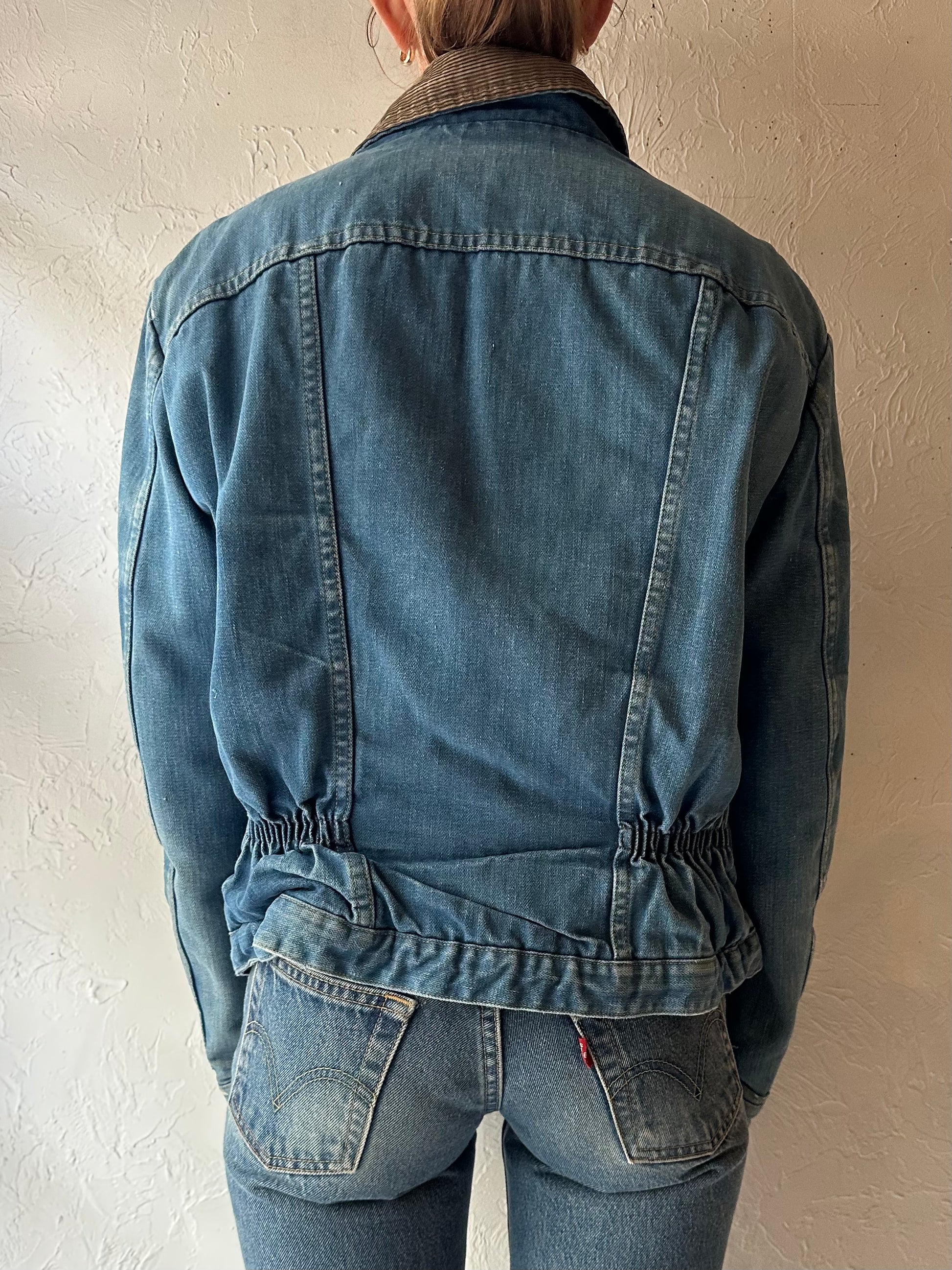 80s 'Three Bears' Faux Shearling Lined Demin Jacket / Medium