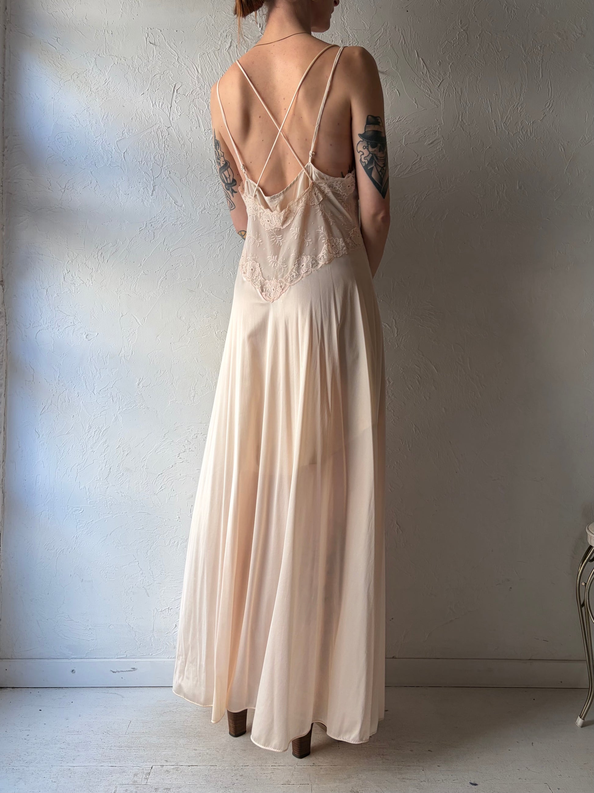 80s 'Vanity Fair' Pink Lacey Maxi Slip Dress / Small