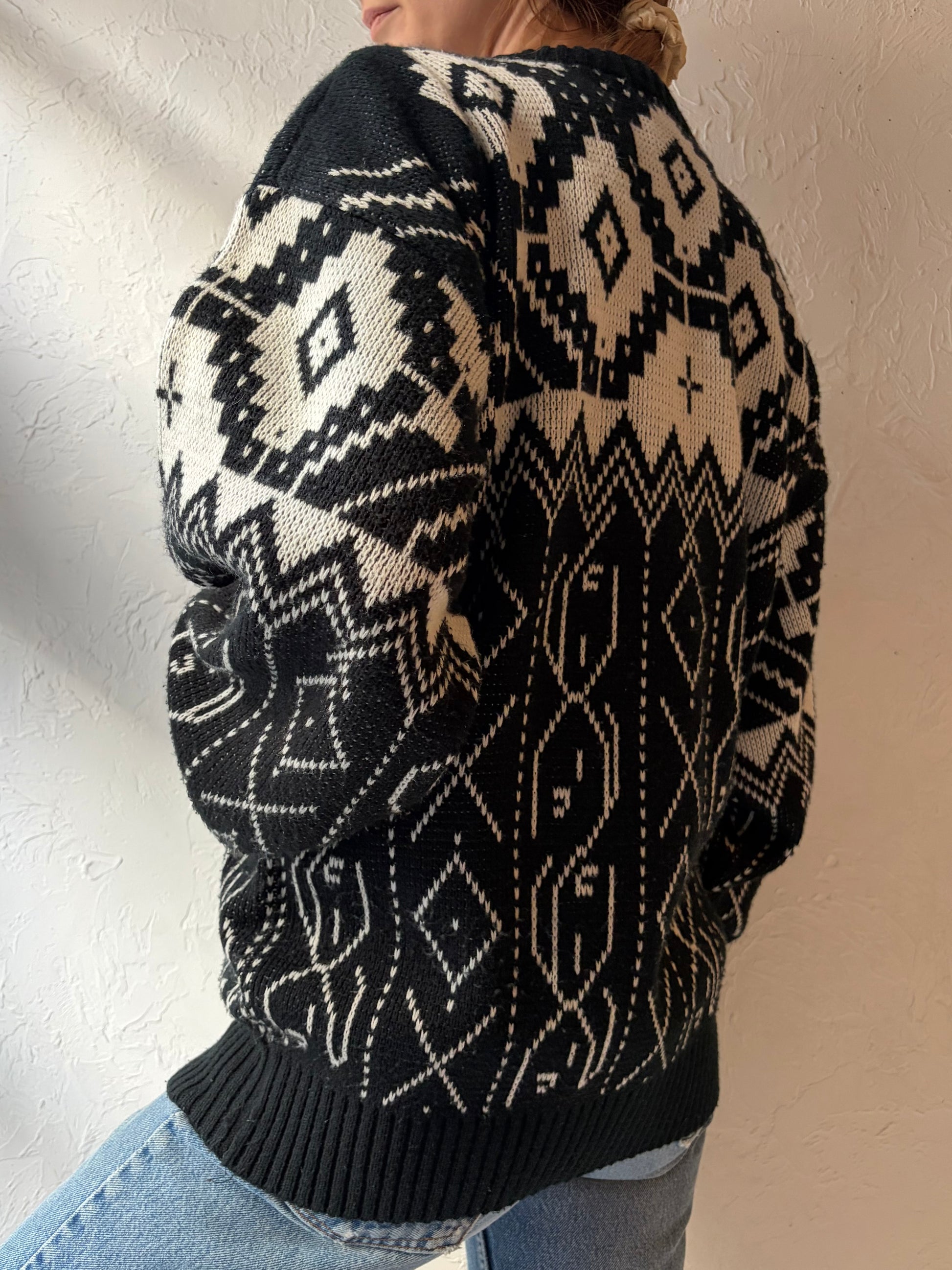 - Vintage 90s Bay Club black acrylic patterned crew neck sweater