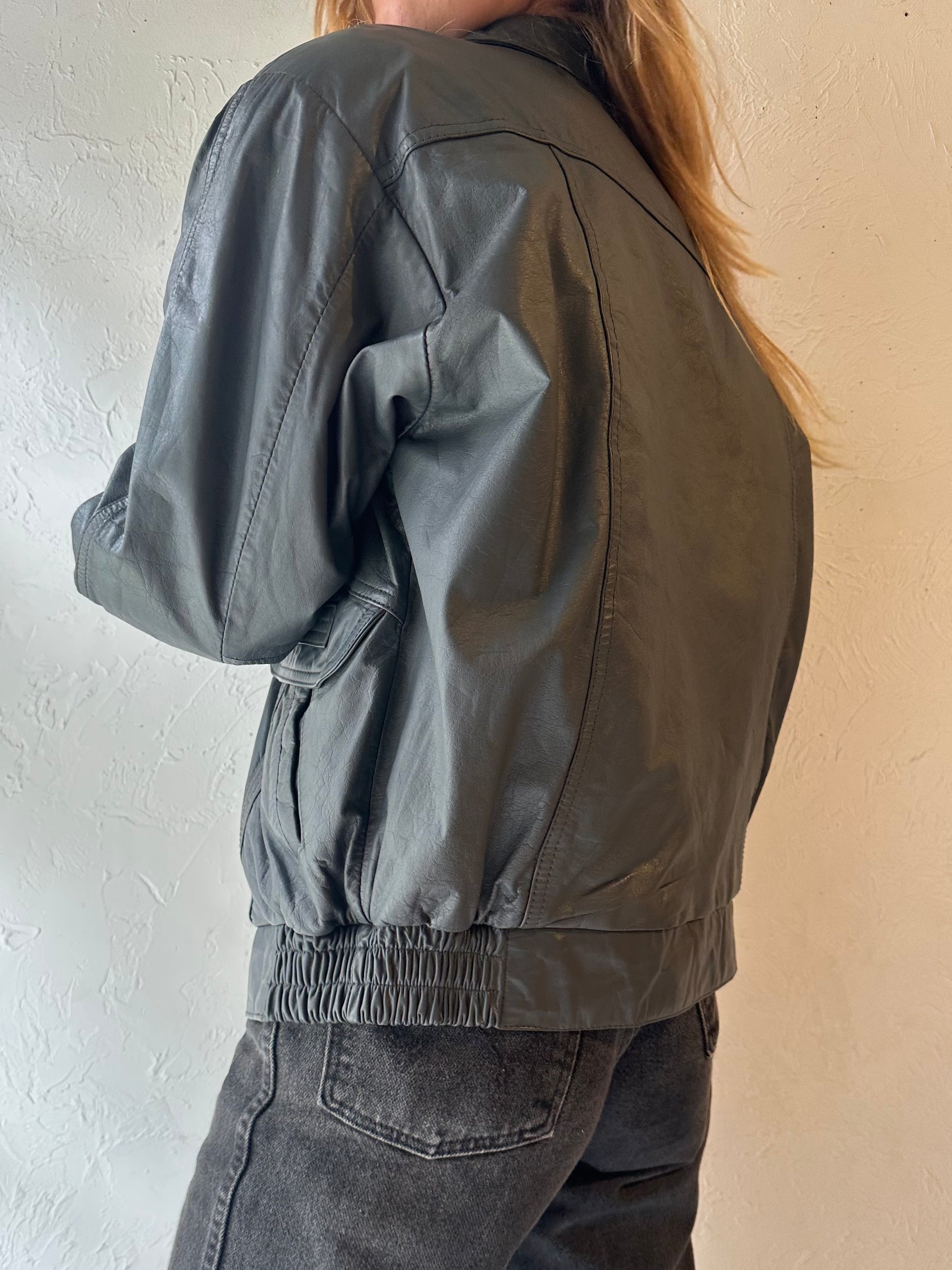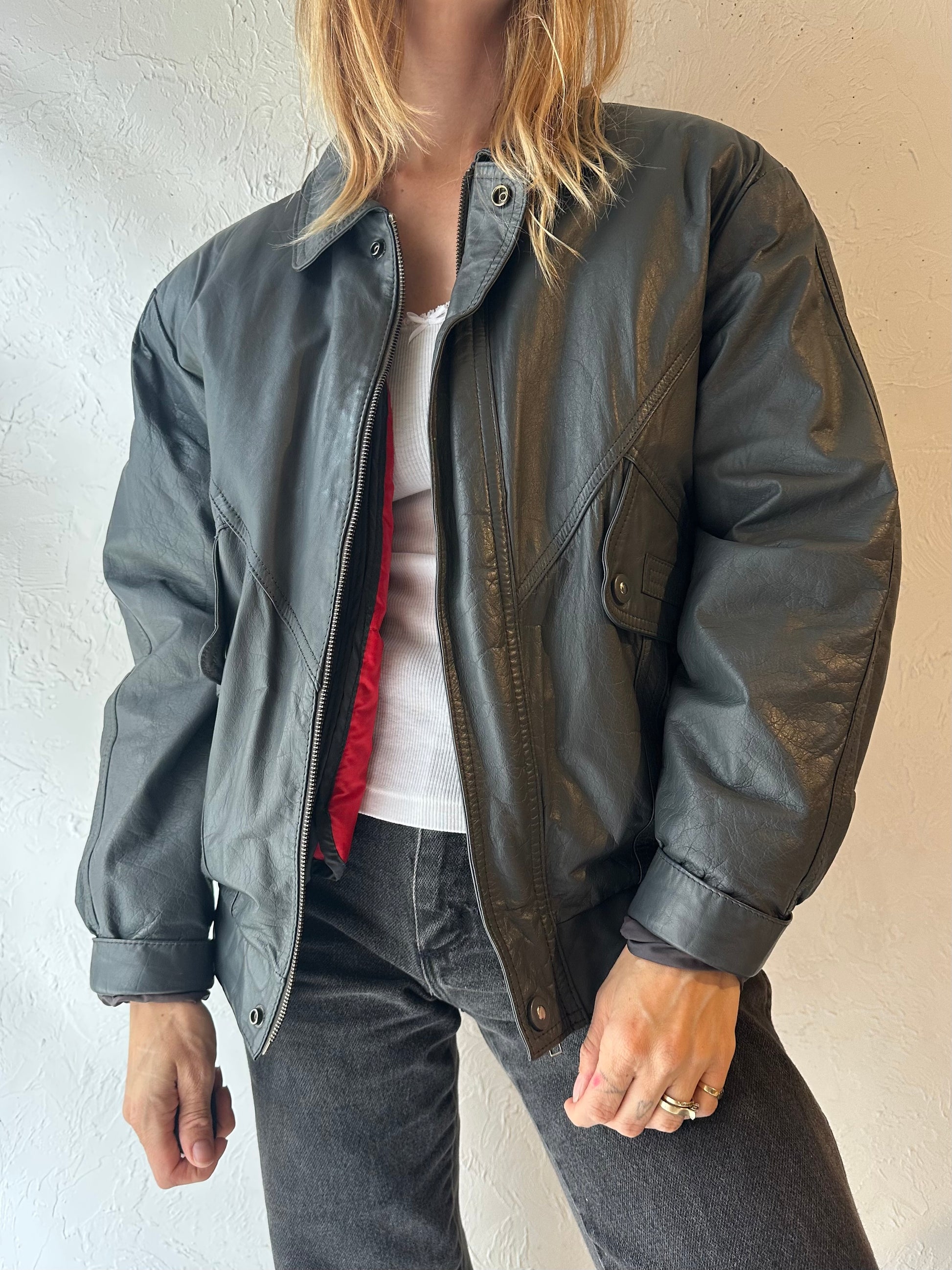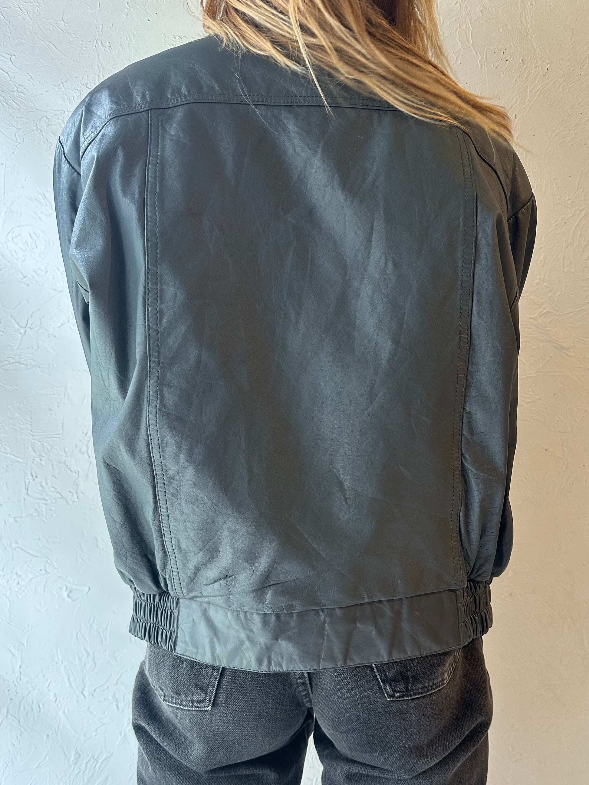 90s ‘Boulevard Club’ Gray Leather Bomber Jacket / Medium