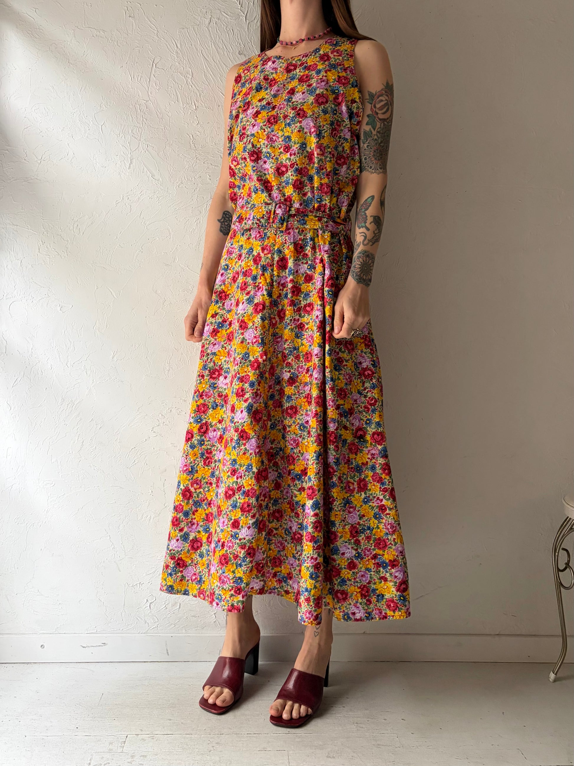 90s 'Fairset' Cotton Floral Spring Dress / Large