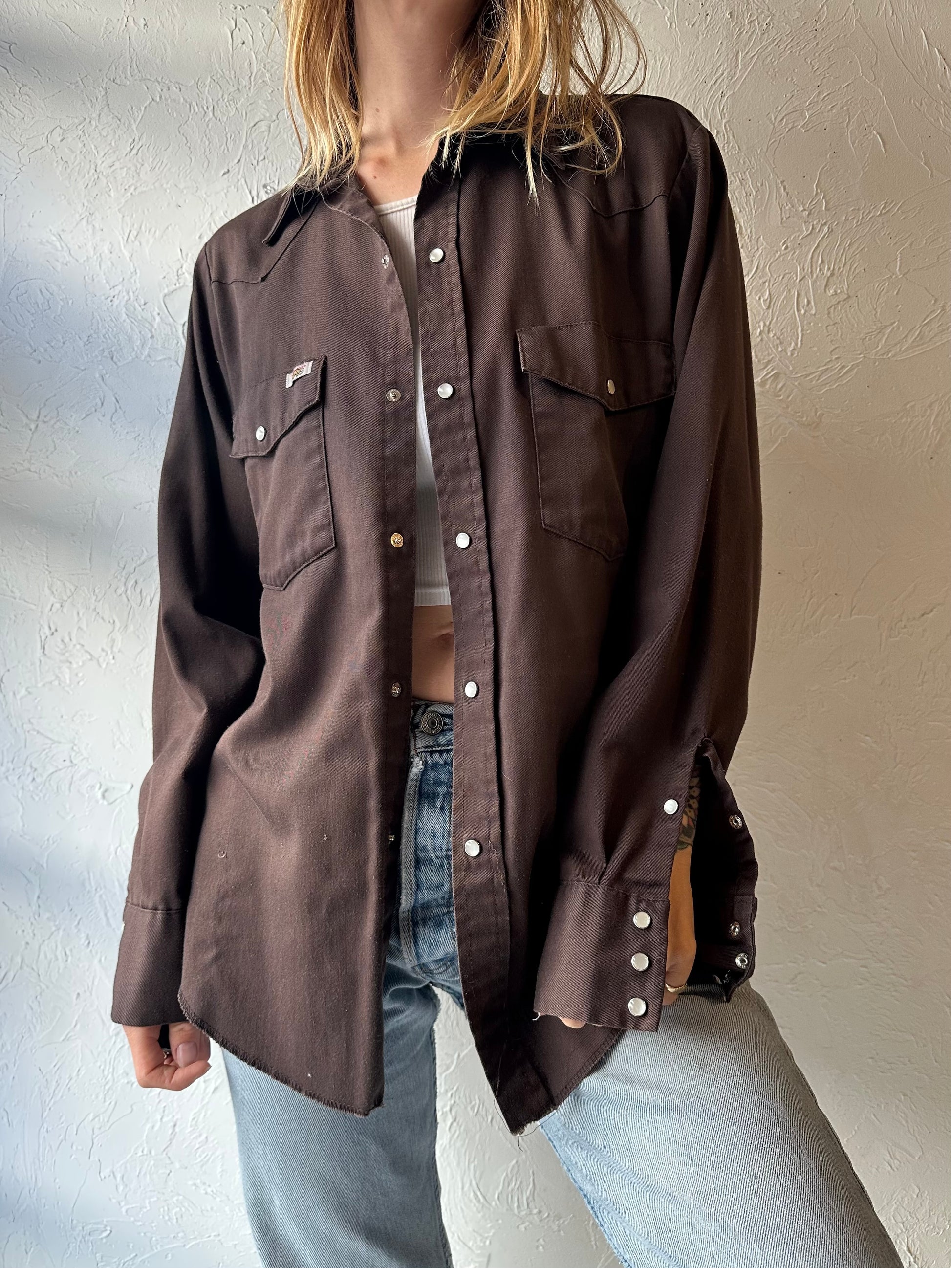 90s ‘GWG’ Brown Snap Up Shirt / Medium