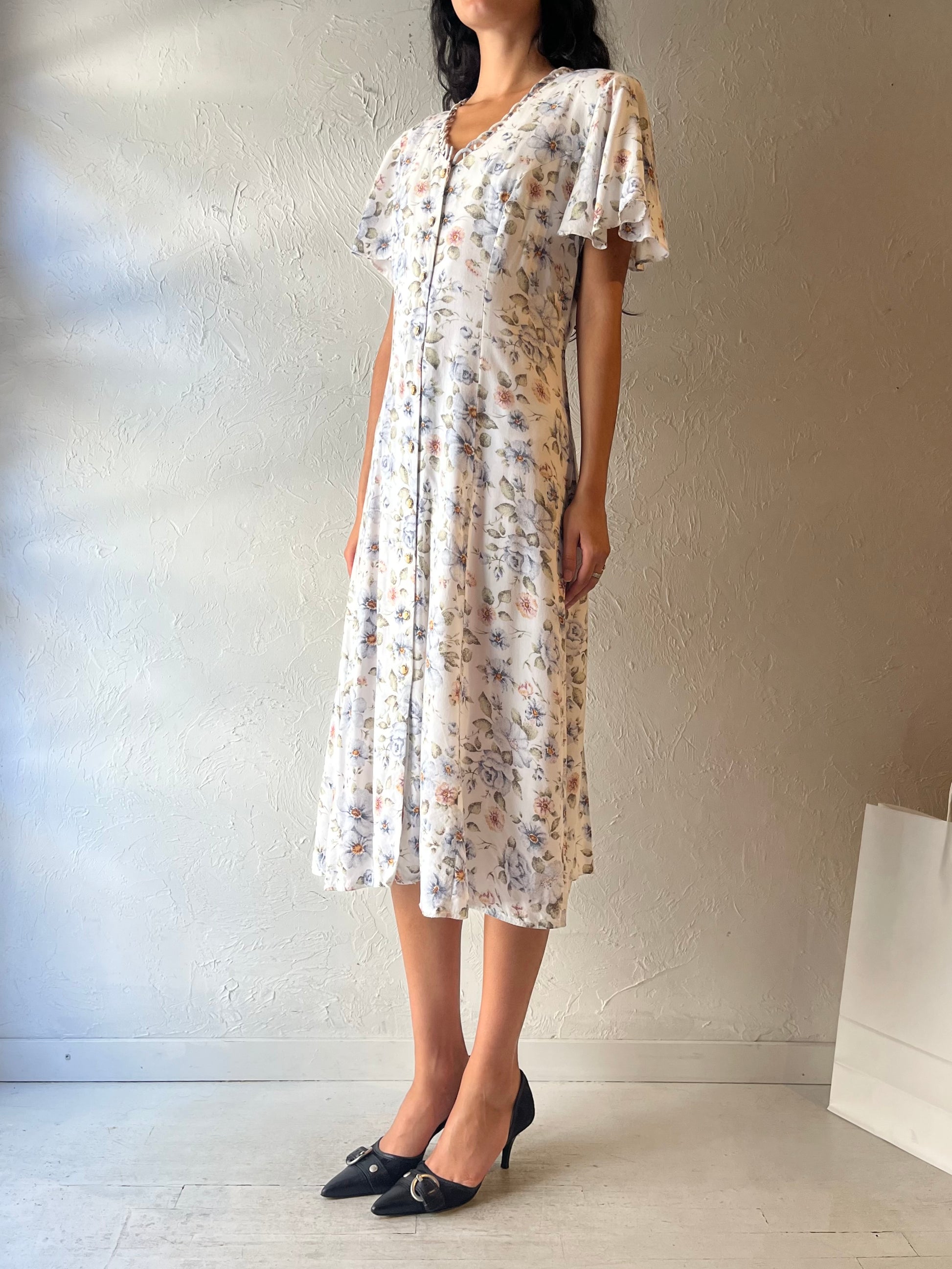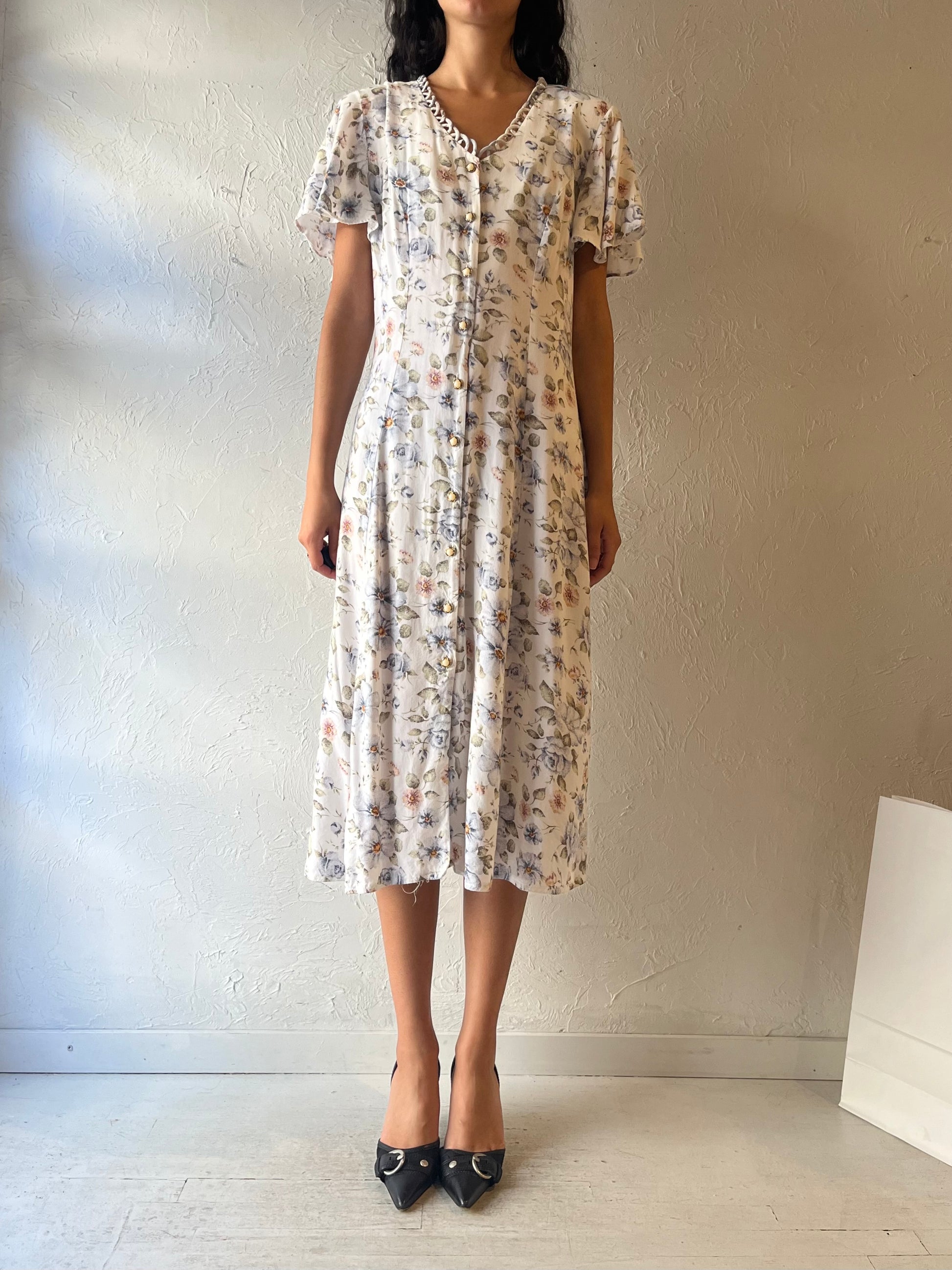 - Vintage 90s Jessica white floral button up maxi dress