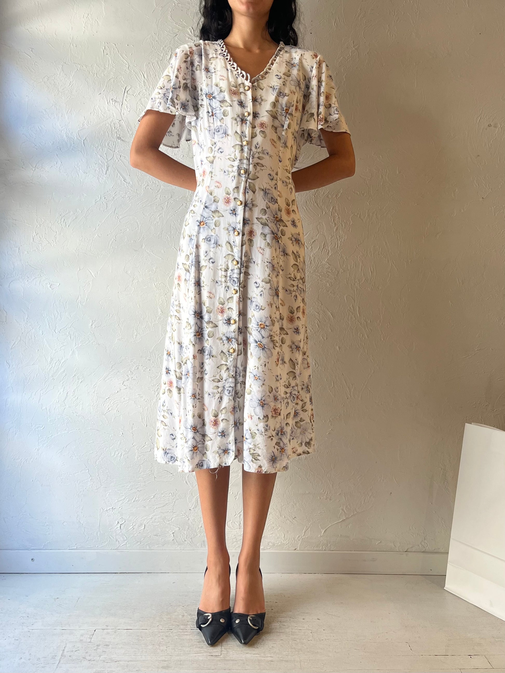 90s 'Jessica' White Floral Button up Maxi Dress / Large