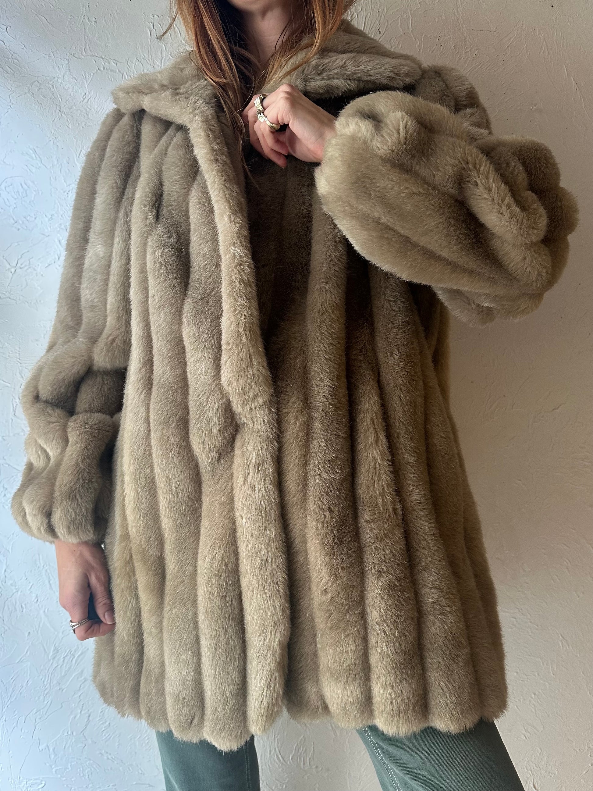 90s 'Jordache' Faux Fur Jacket / Medium - Large