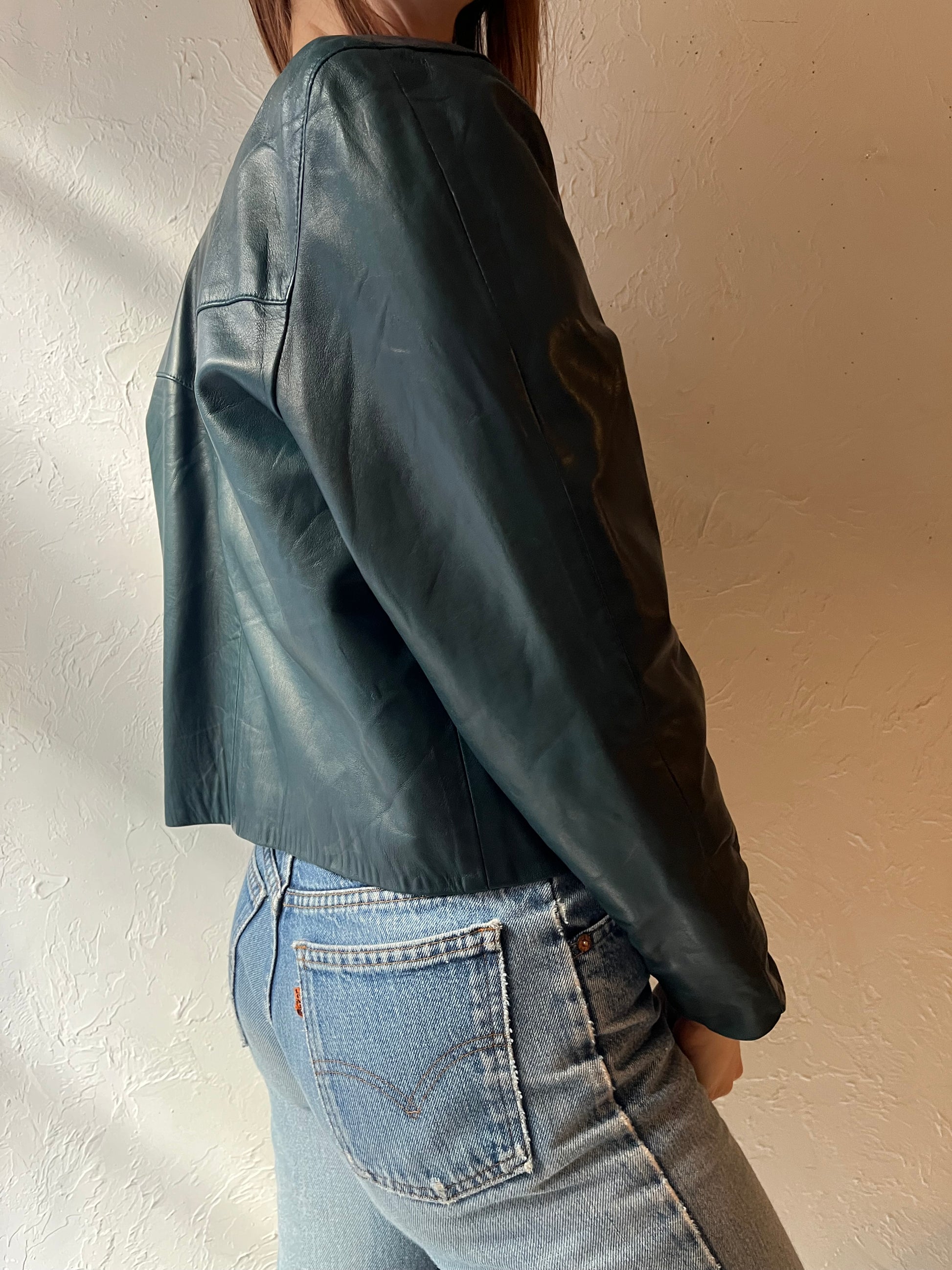 90s ‘Lanna’ Cropped Green Leather Jacket / Small
