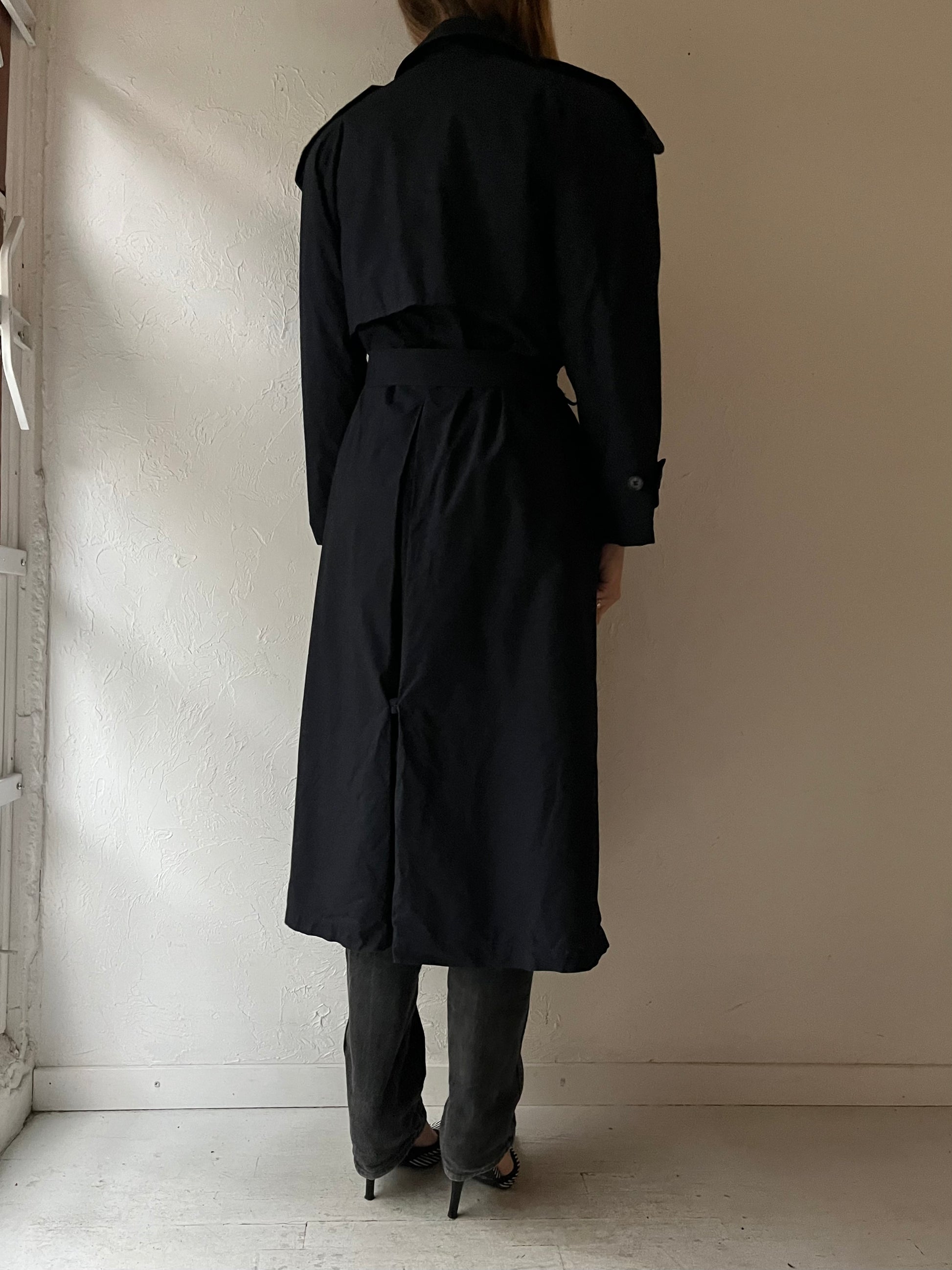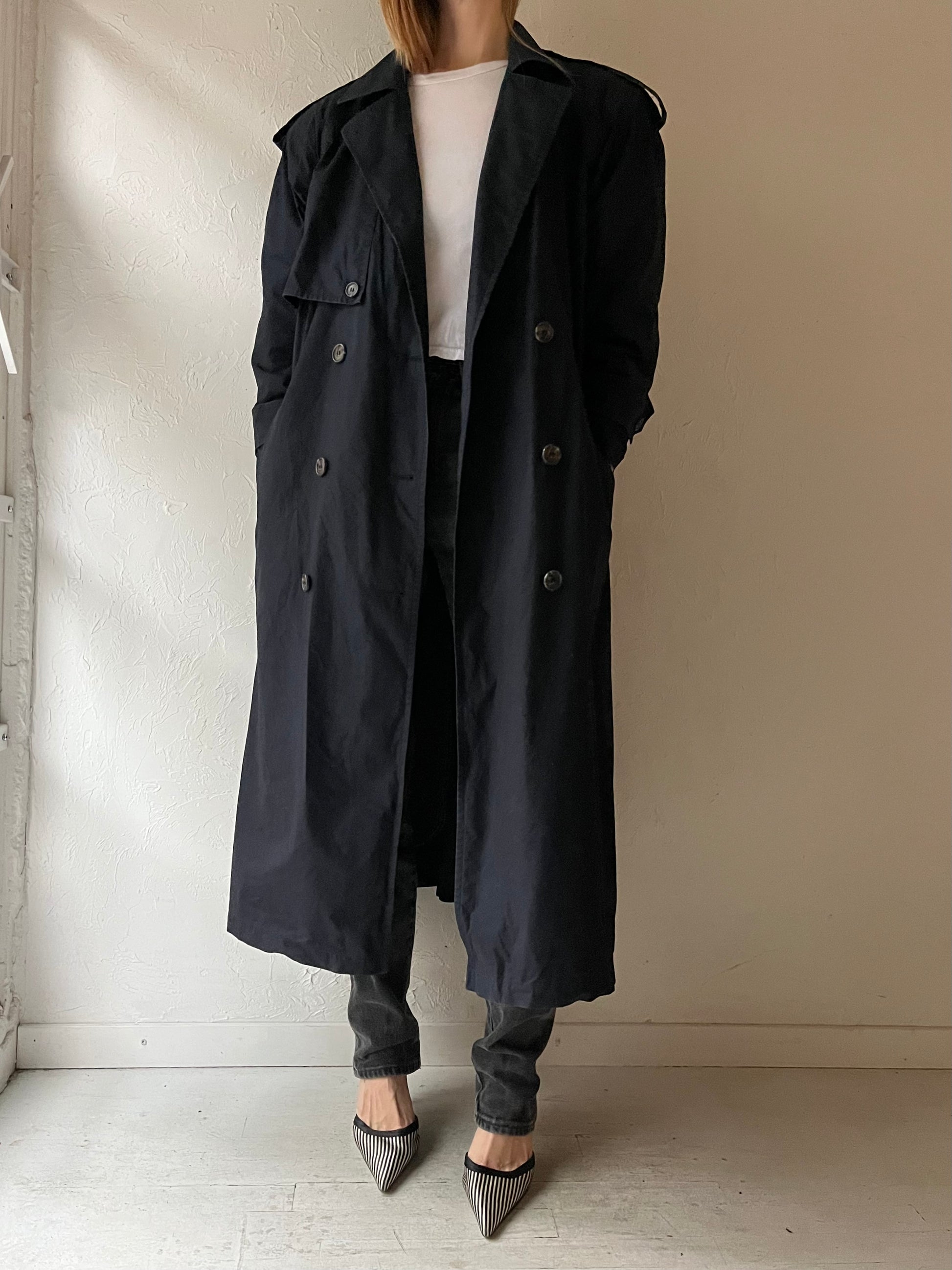 90s ‘Anne Klein’ Navy Blue Lined Trench Coat / Medium