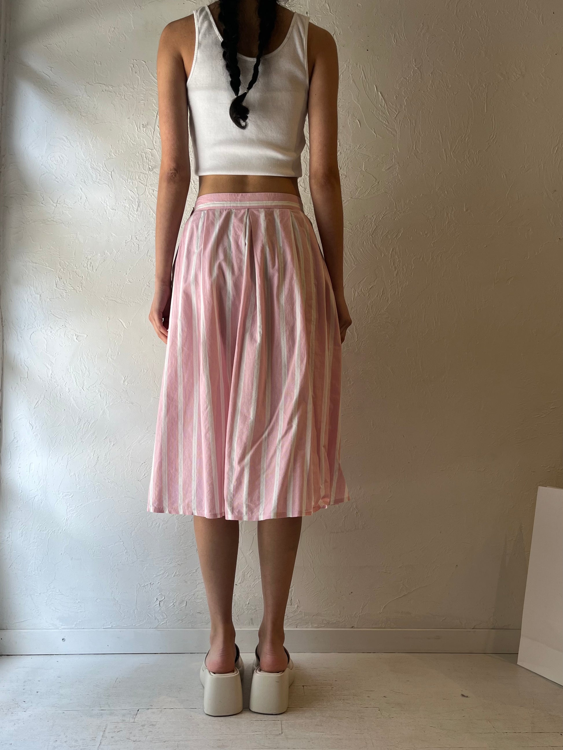 - Vintage Miss Cassidy pink striped midi skirt