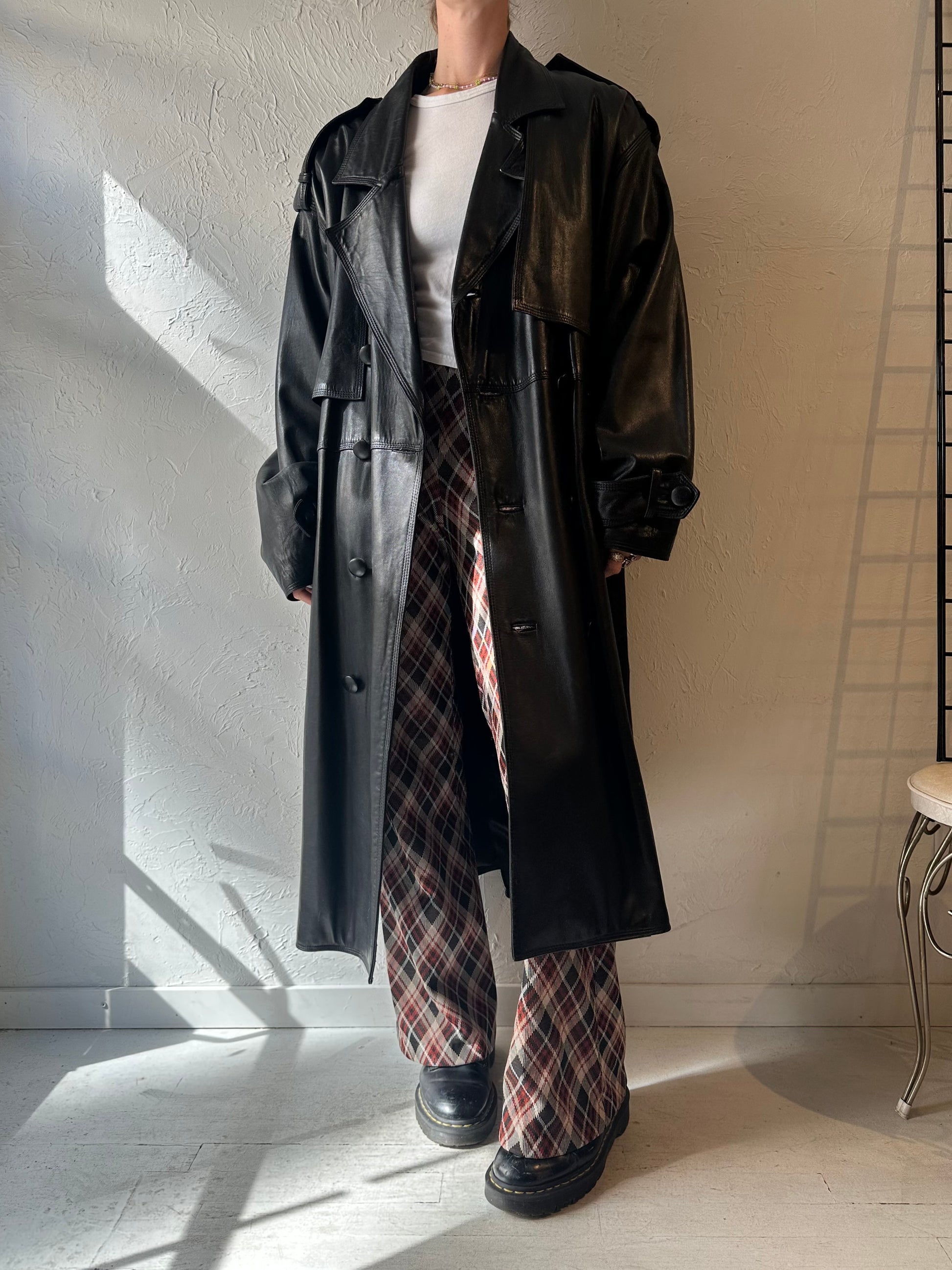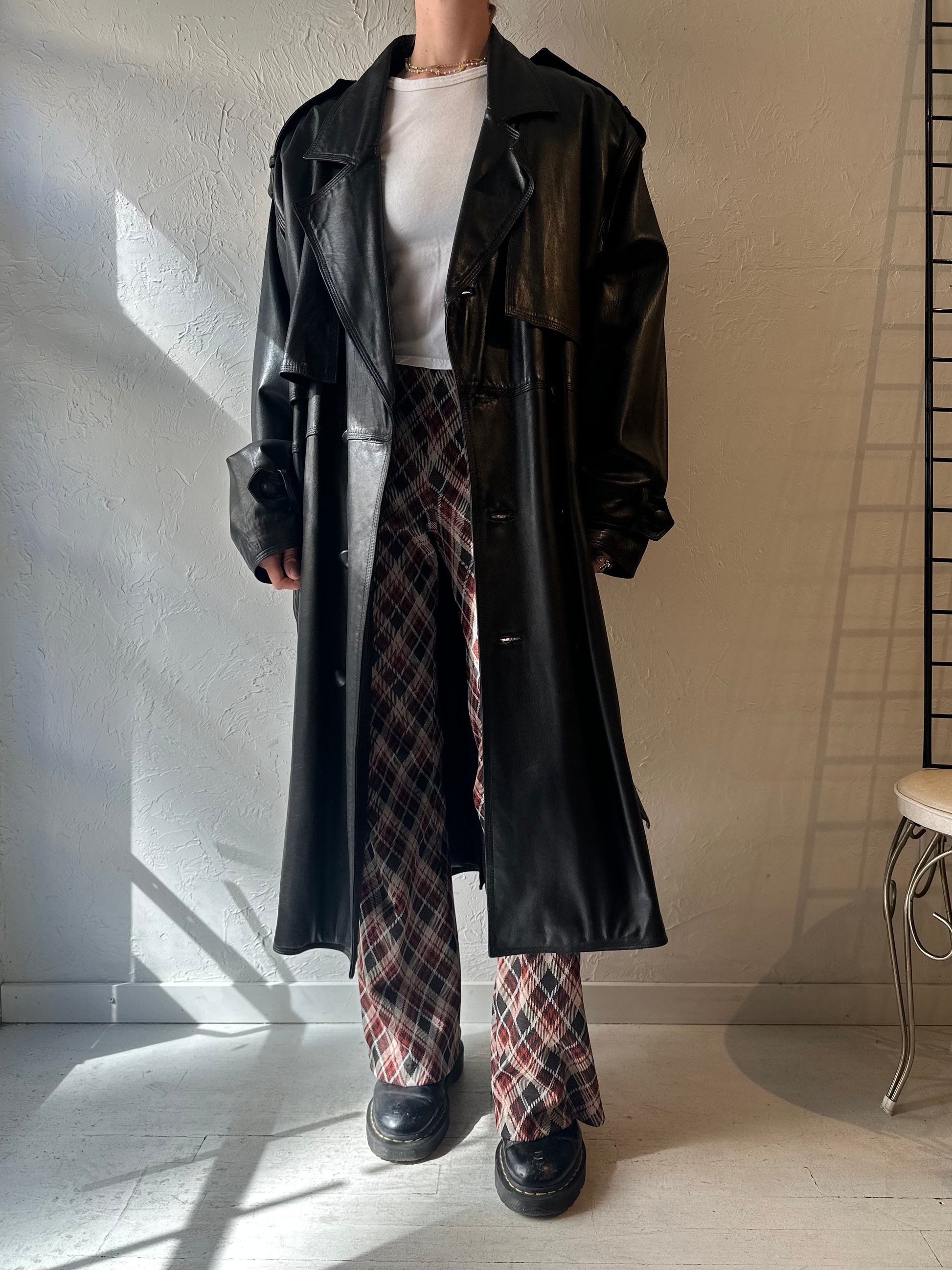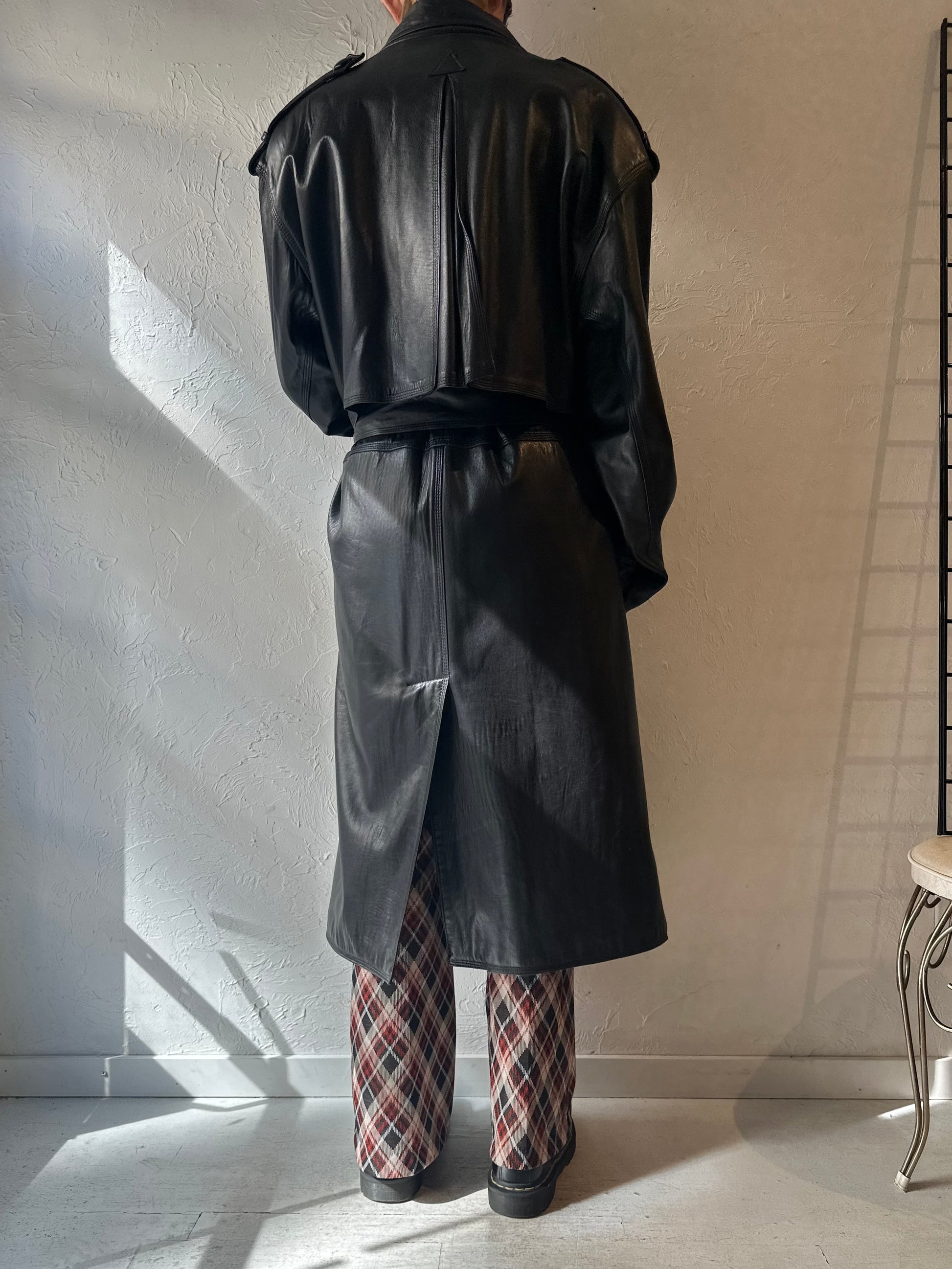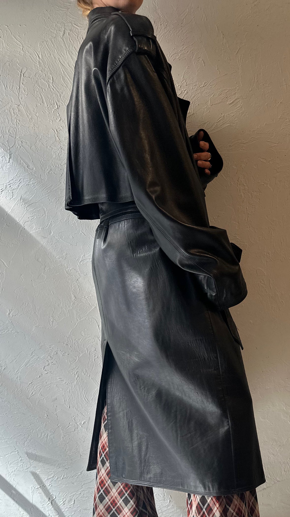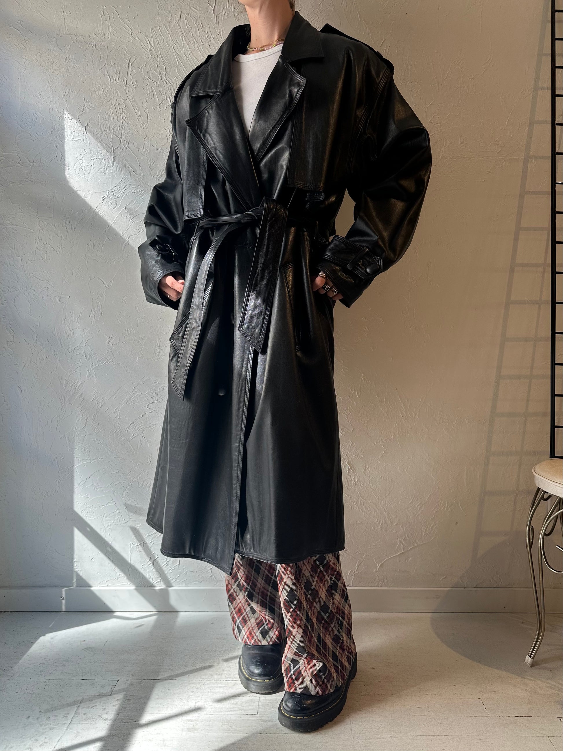 90s 'Nancy Lord' Black Leather Trench Coat / Large