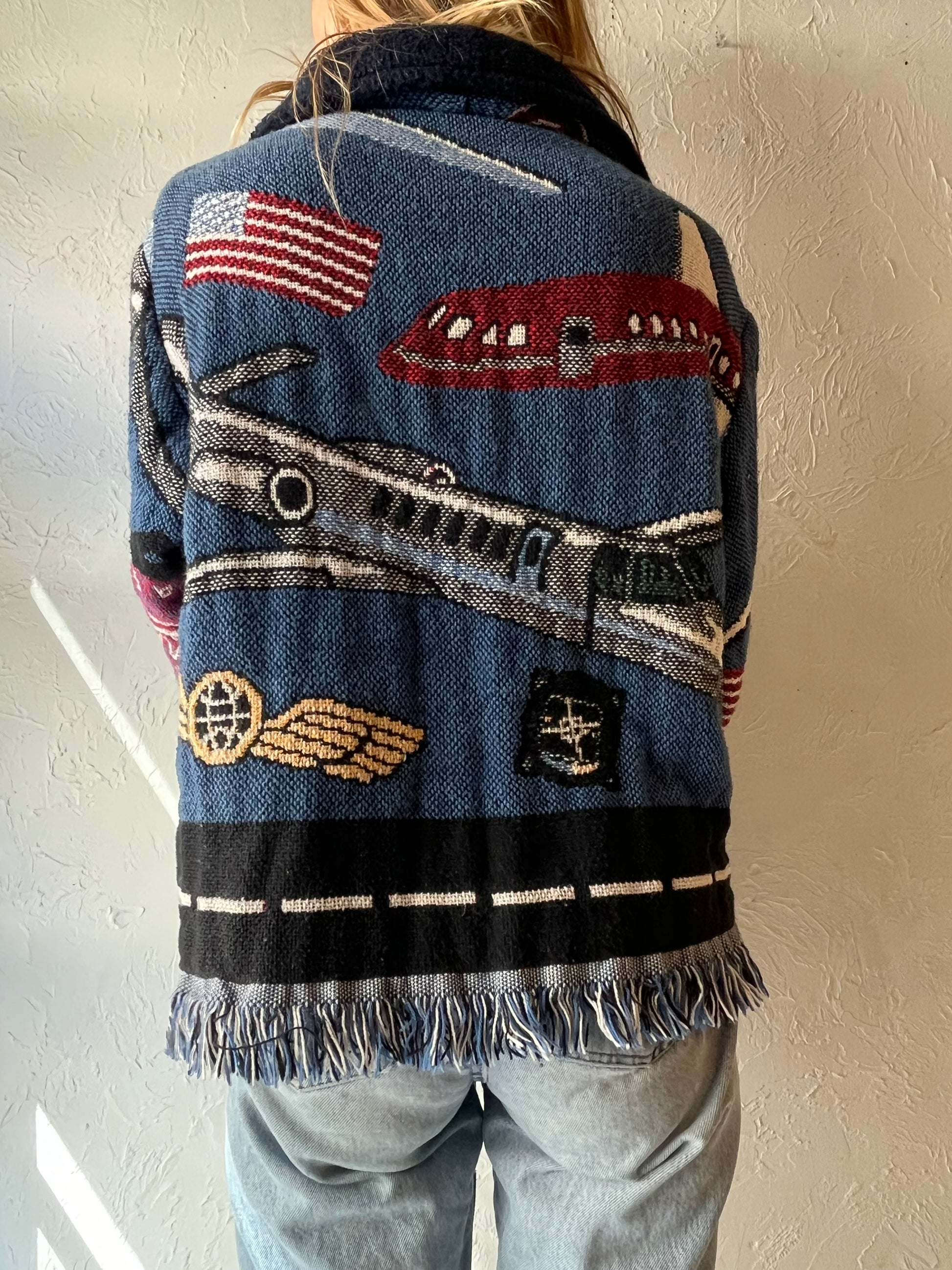 Vintage Aviation Tapestry Blanket Jacket / Medium
