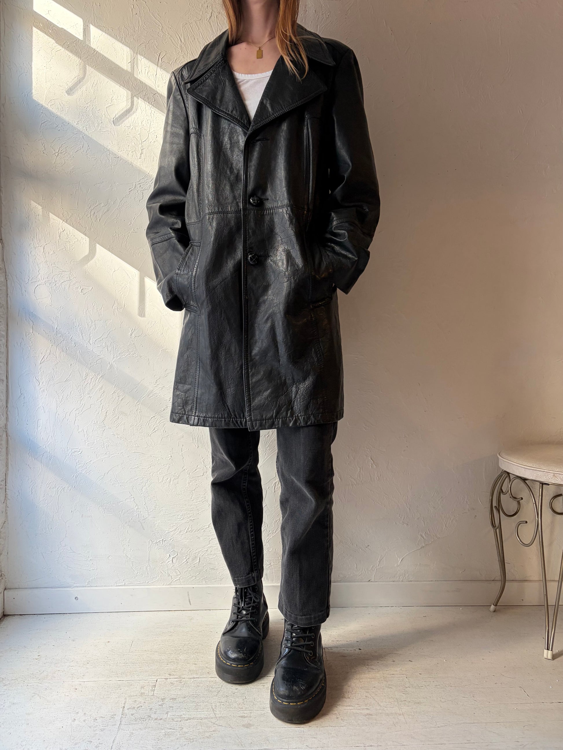 Vintage Black Leather Coat / Large