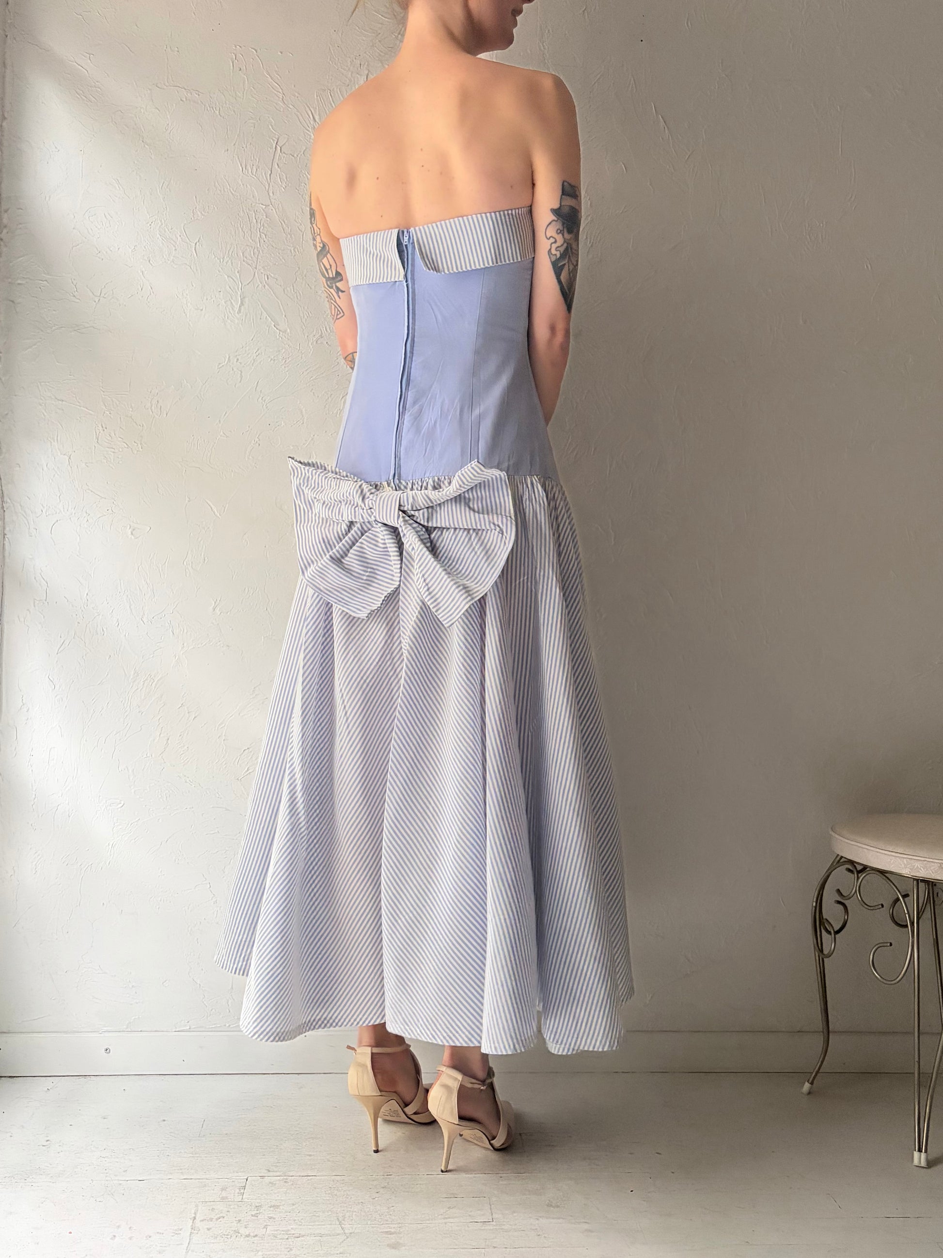 80s 'Laura Ashley' Strapless Drop Waist Dress / Small - Medium