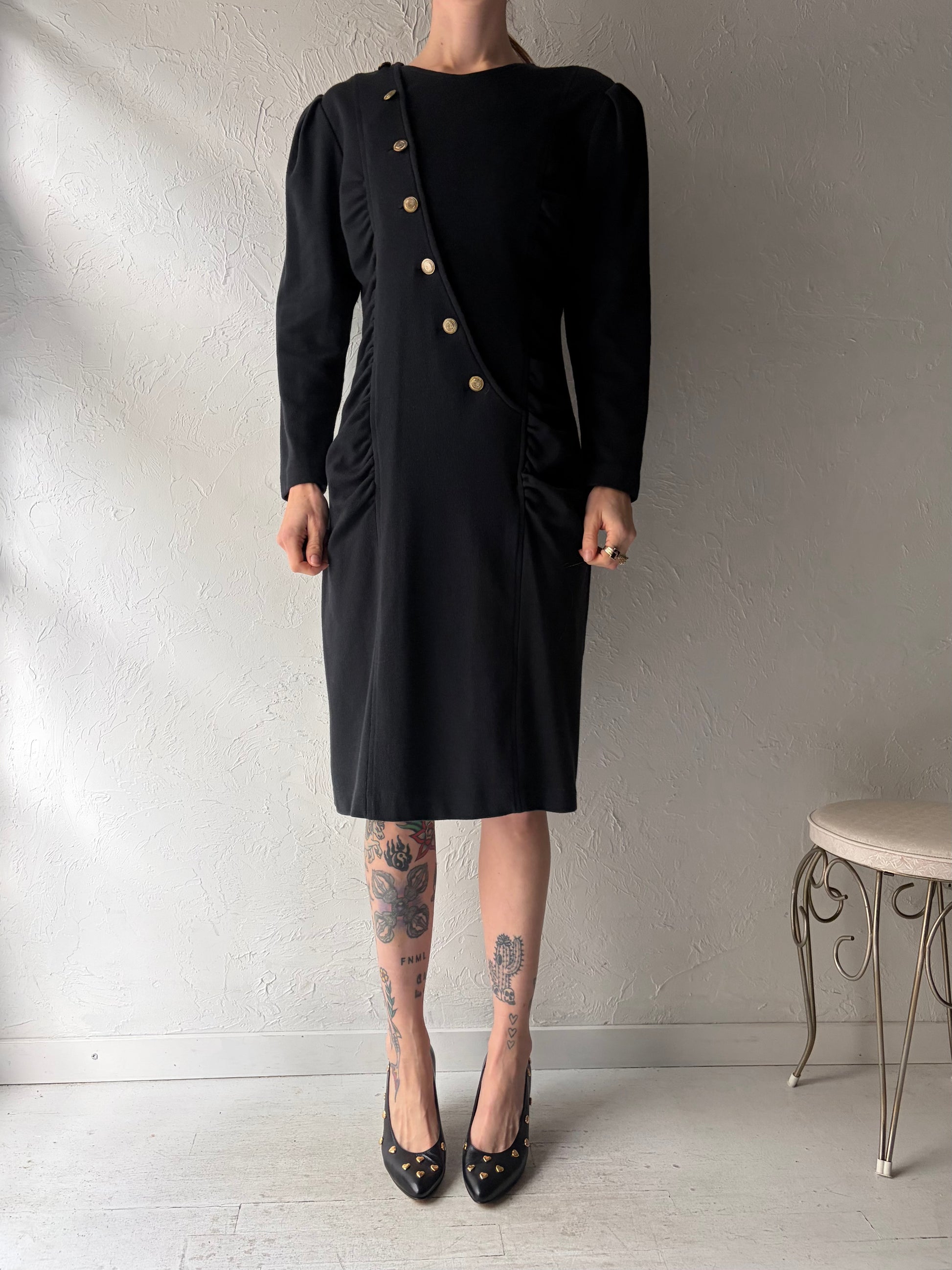 80s 'Chorus Line' Black Knit Dress / Medium