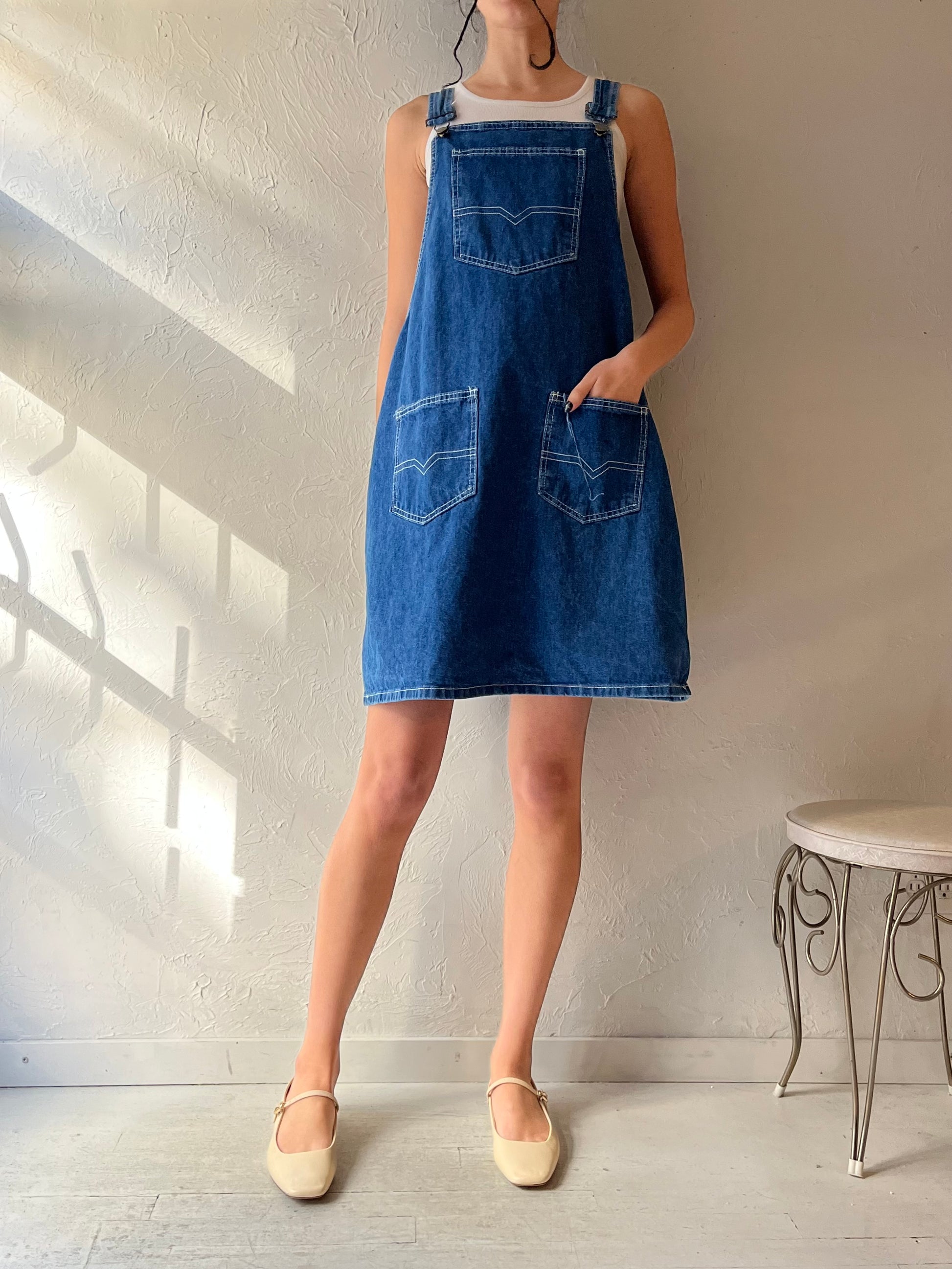90s 'Cotton Ginny' Denim Overalls Dress / Large