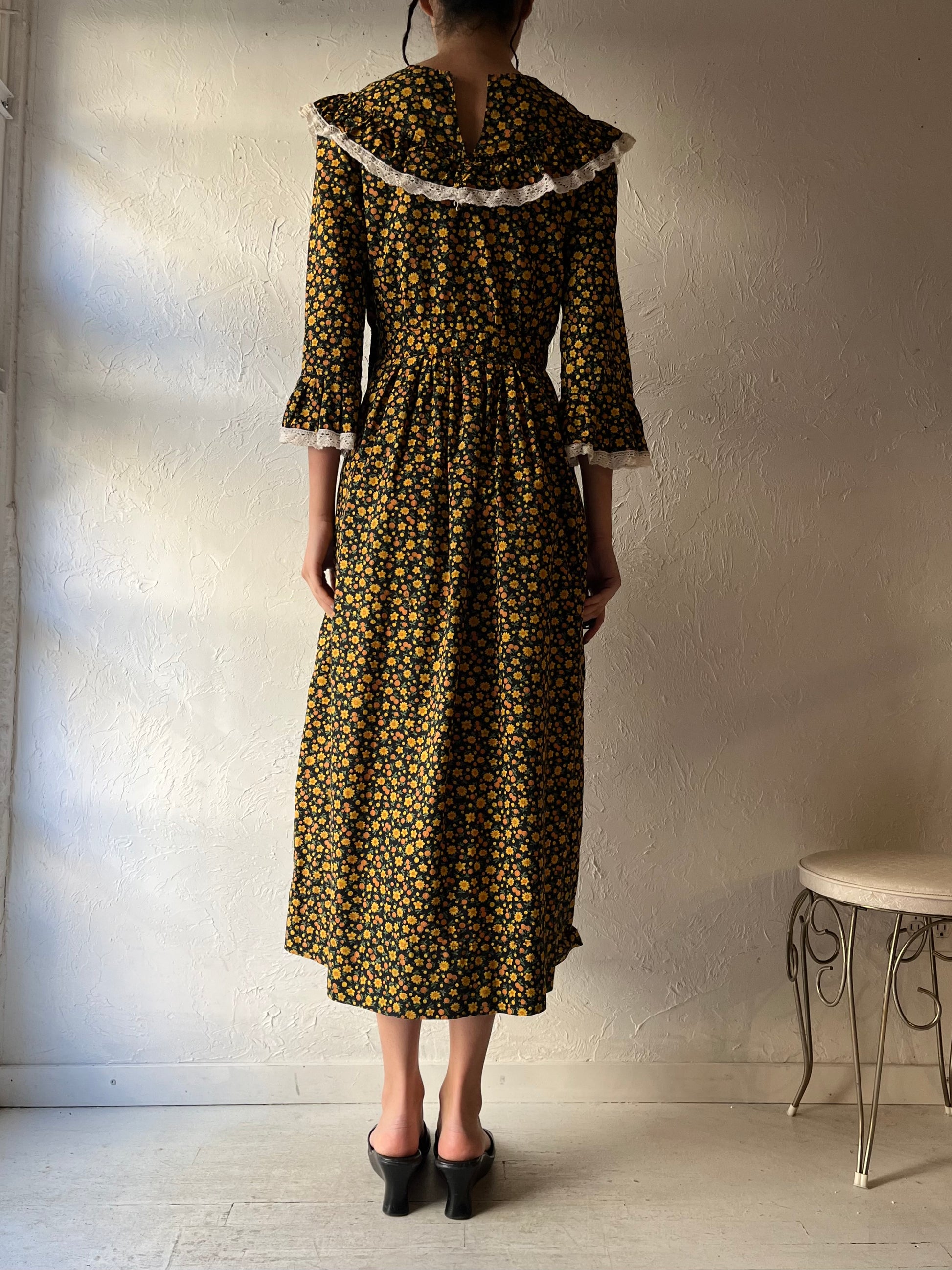 Vintage Handmade Floral Peasant Midi Dress / Small
