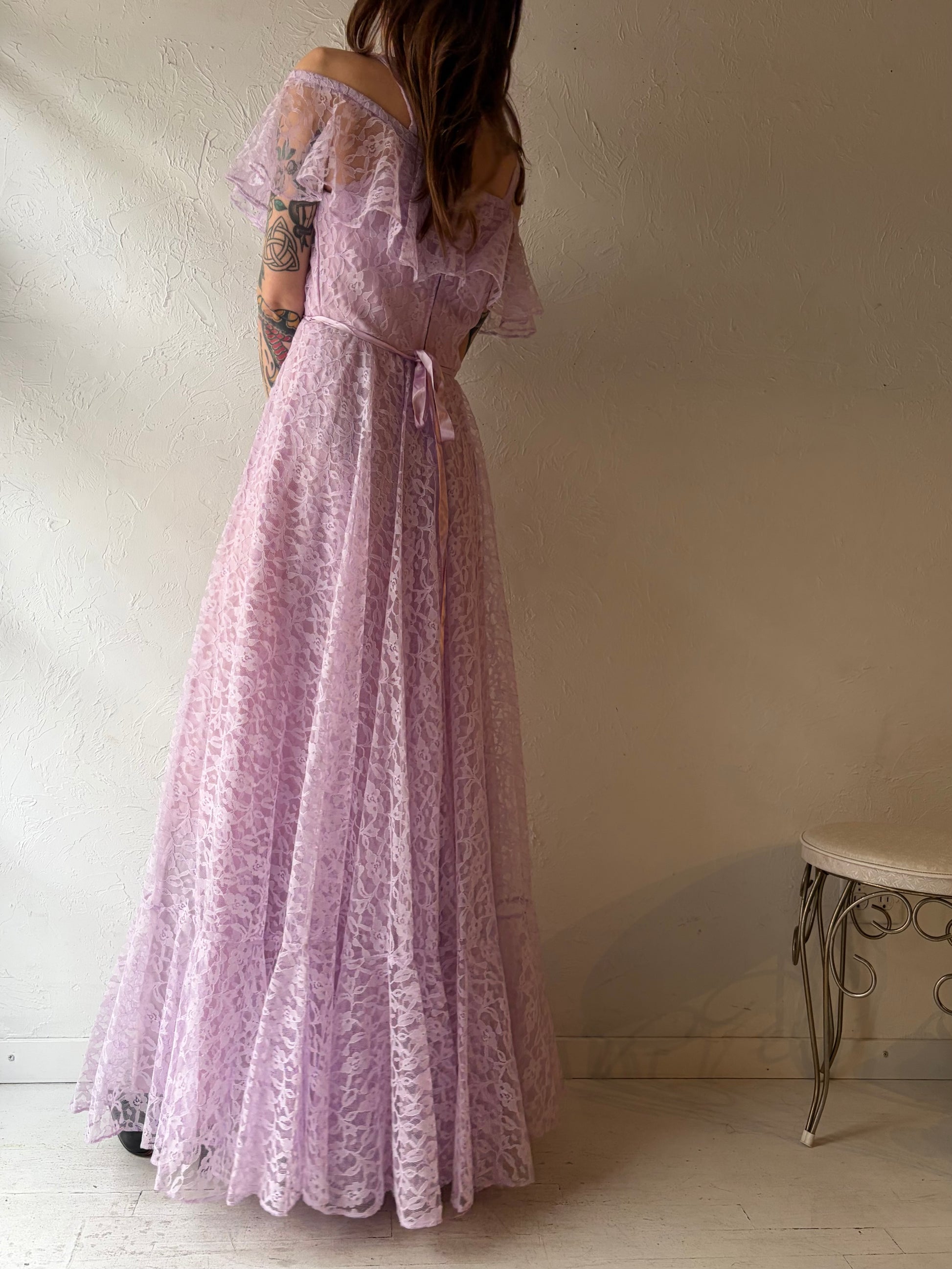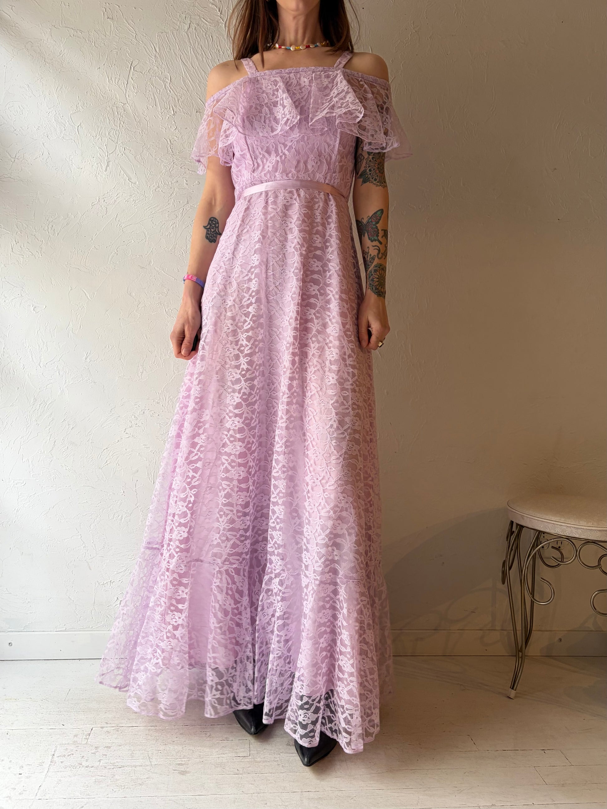 70s 'Impressions' Purple Lace Formal Dress / Union Made / Small