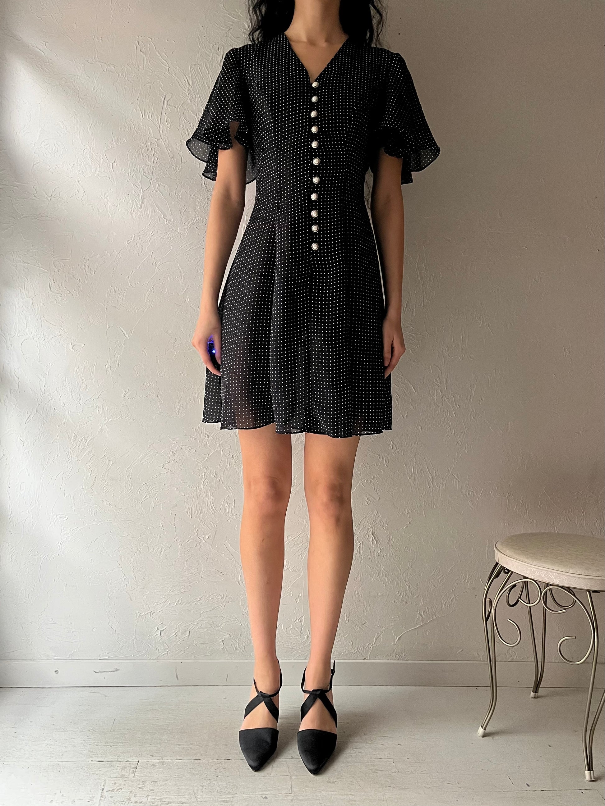 90s 'Emblem' Polka Dot Mini Dress / Small
