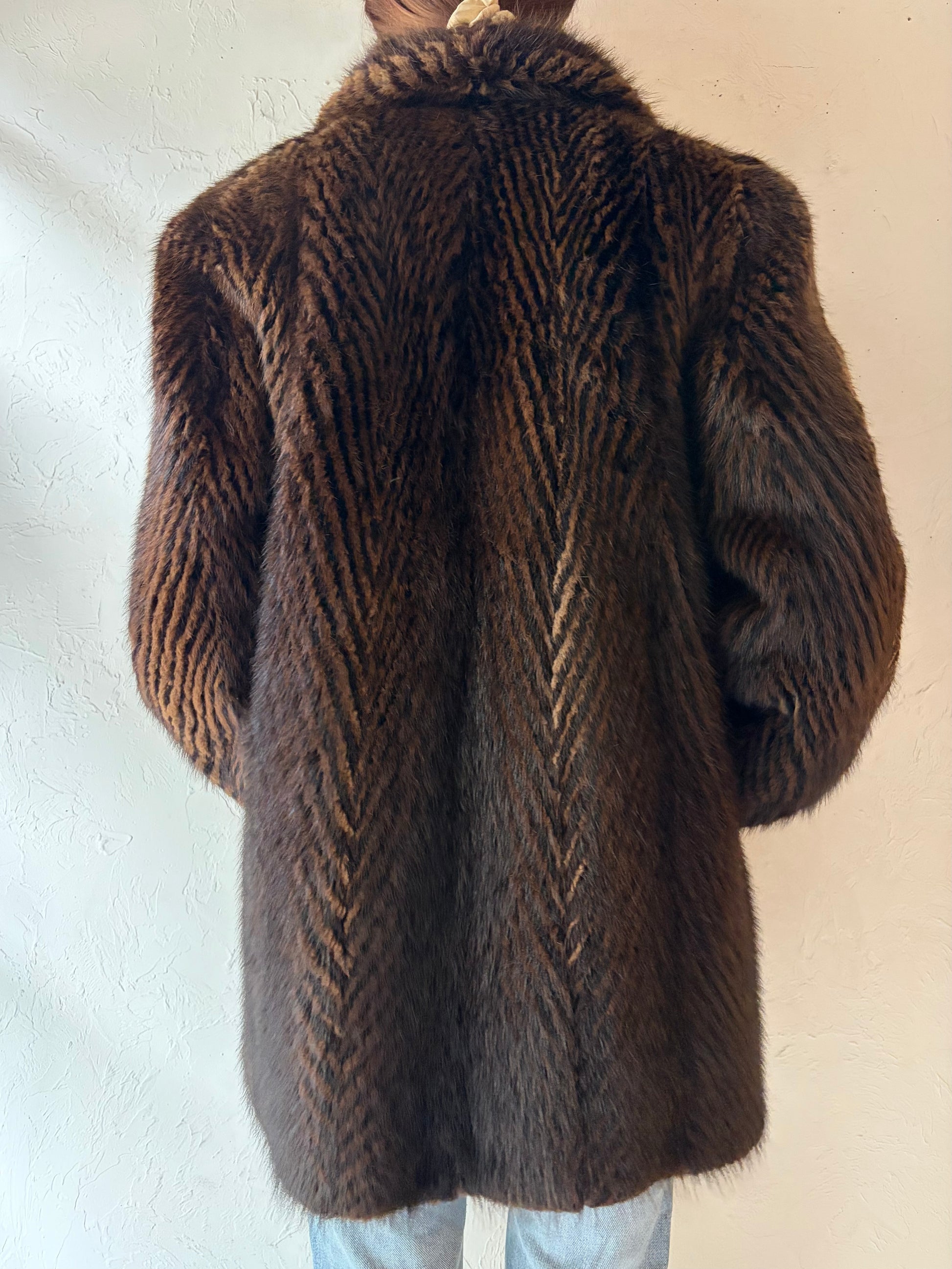80s 'Black's Furs' Chevron Fur Coat / Medium