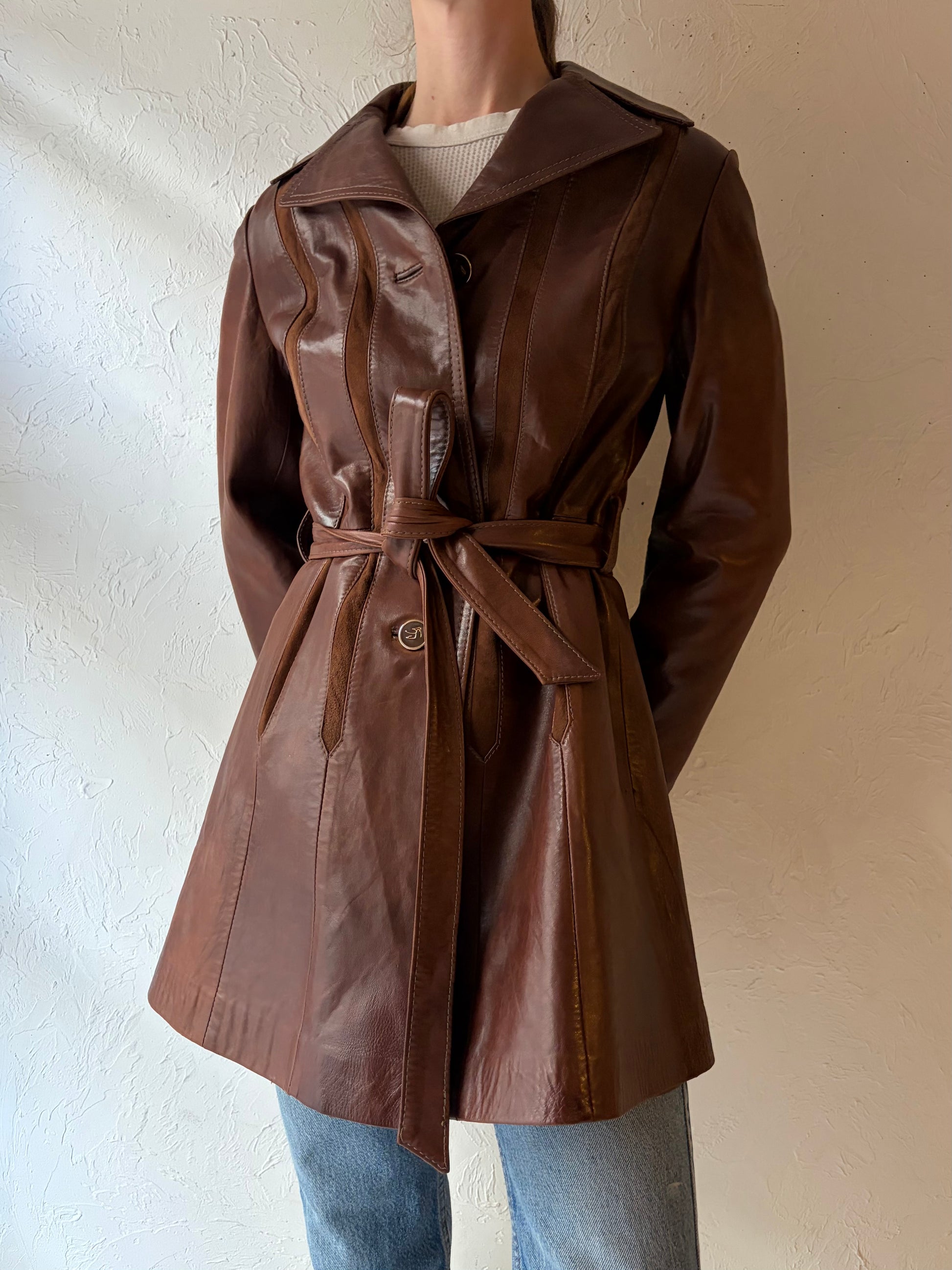 - Vintage 70s Skiu Gear brown leather jacket