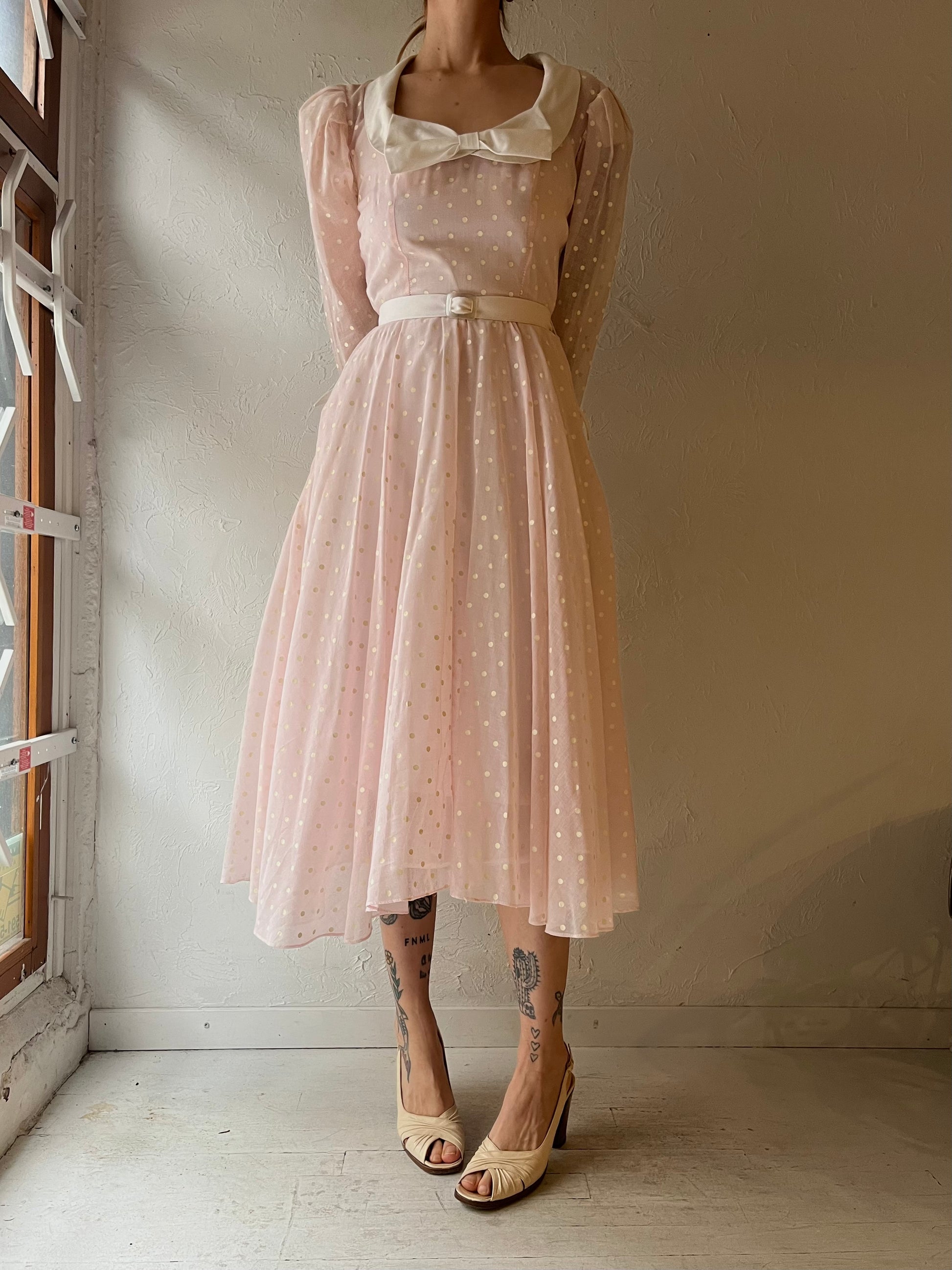 70s 'Junior Scene' Polka Dot Dress / Small