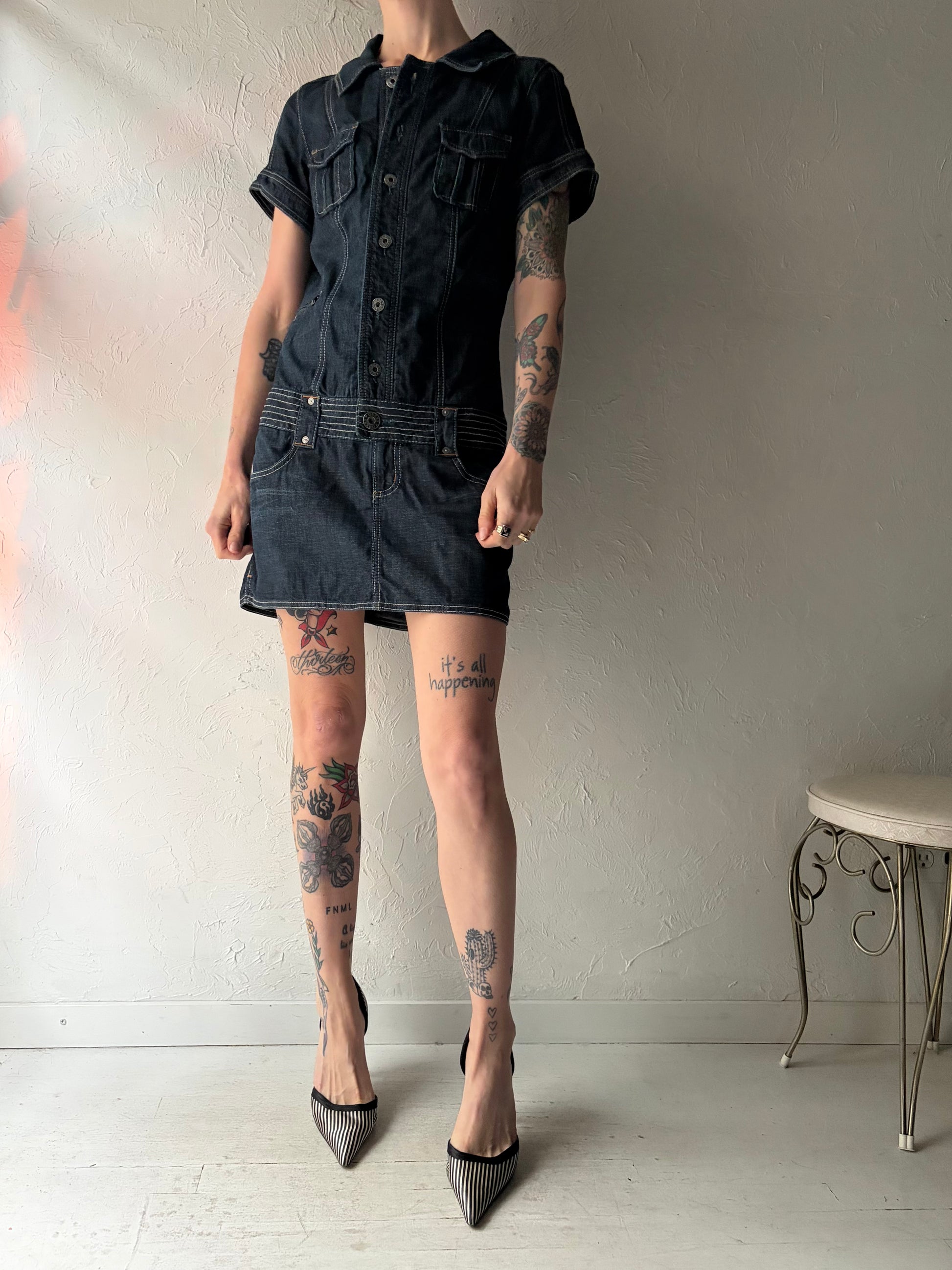 Y2k 'Guess' Dark Denim Mini Dress / Large
