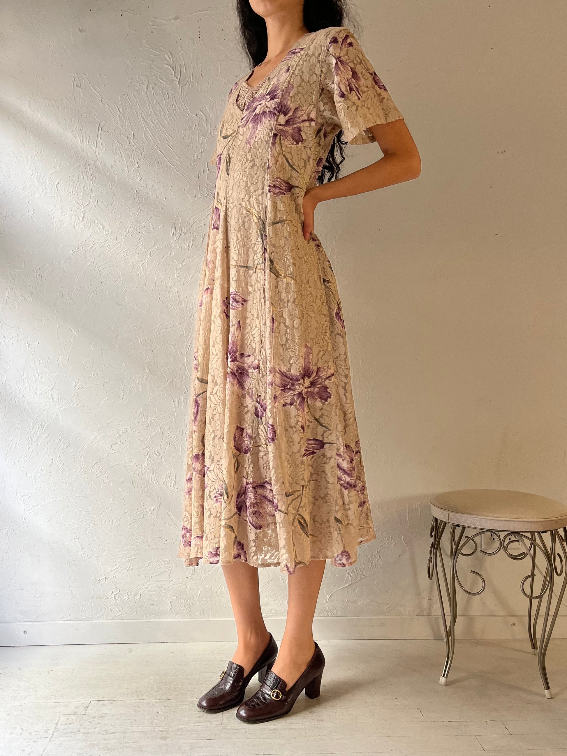 90s 'Nostalgia' Floral Lace Dress / Medium