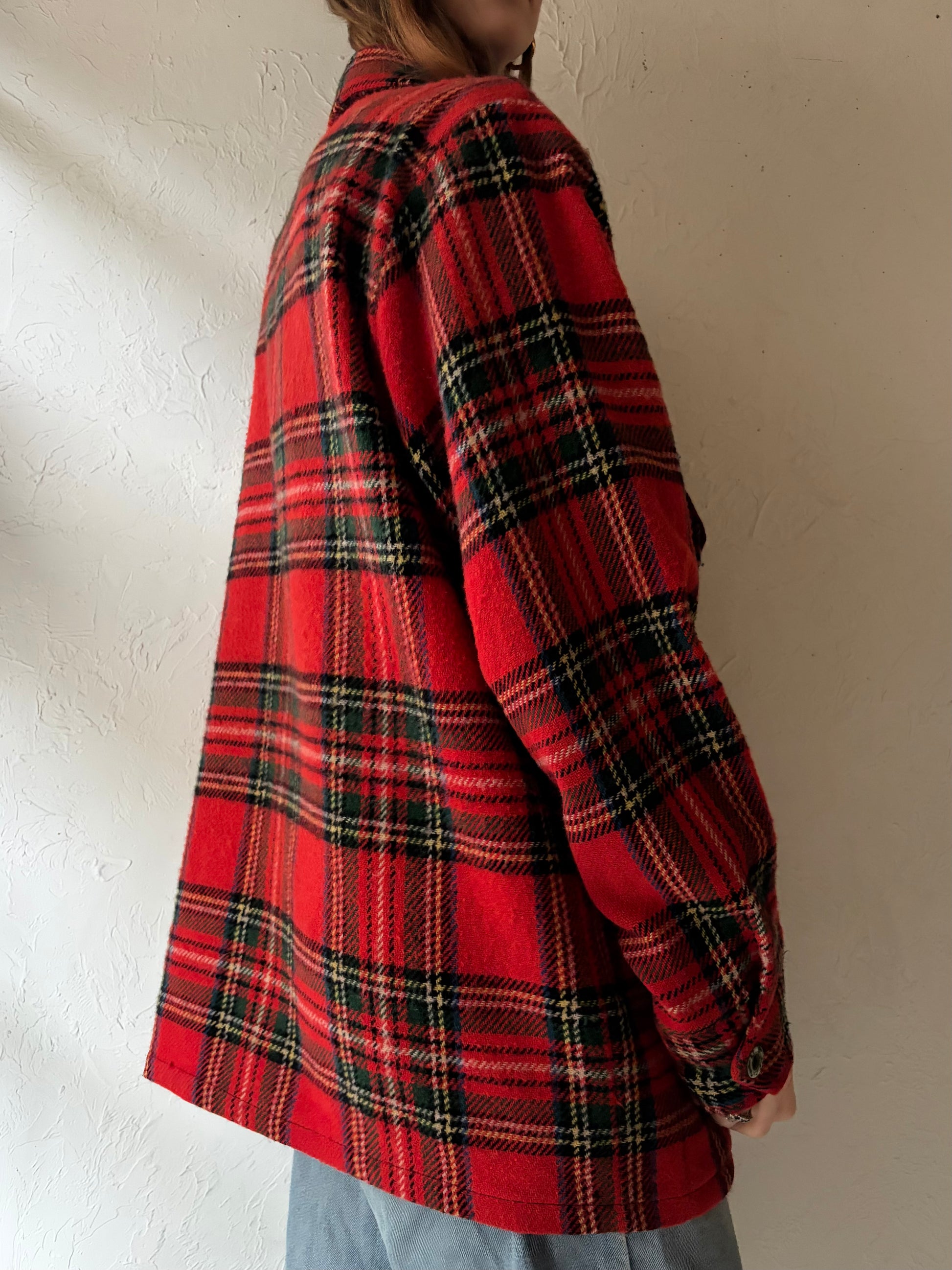 Vintage Knit Plaid Shirt Jacket / Large