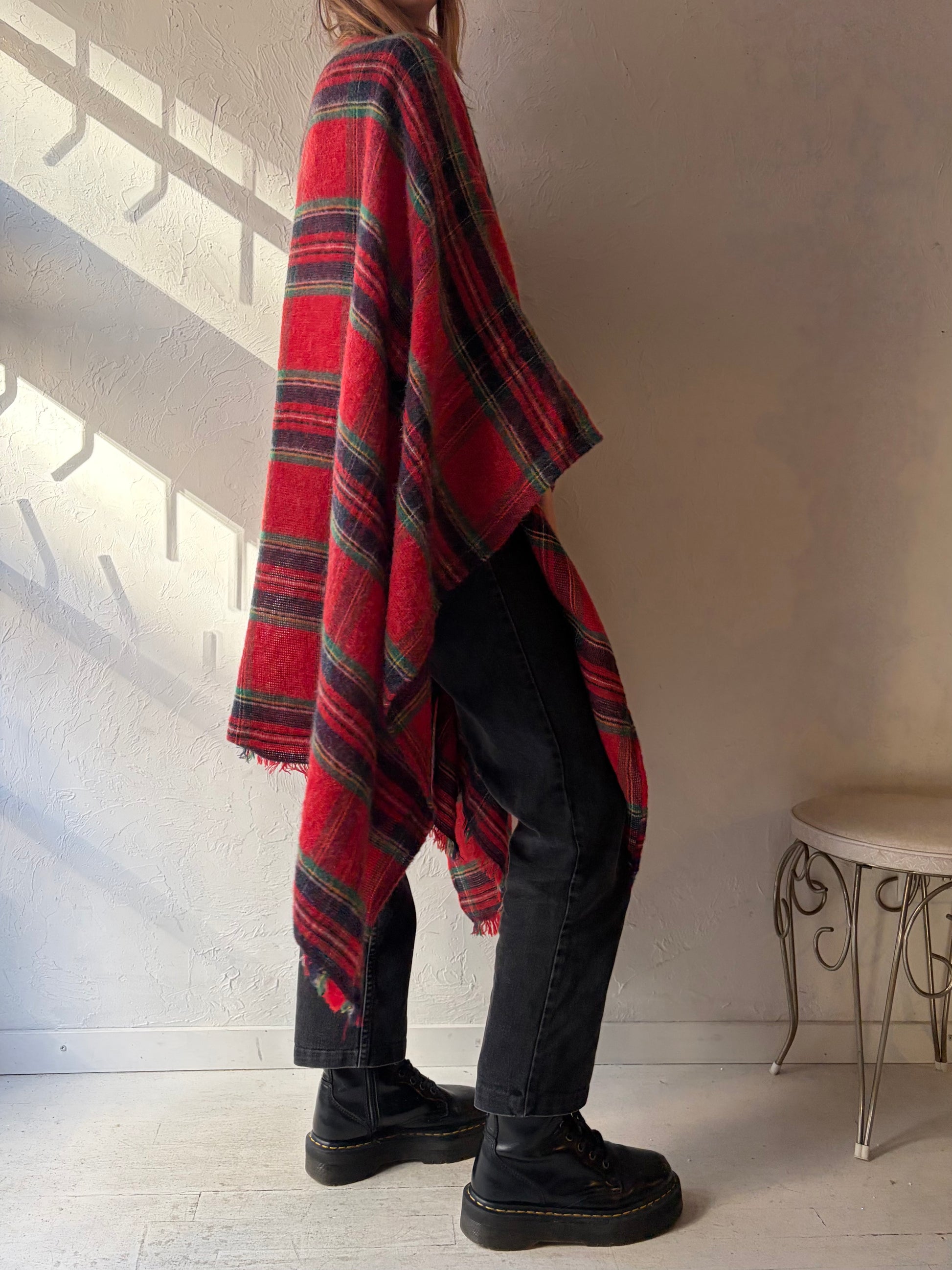 90s 'Proportion Petite' Plaid Mohair Blend Poncho / One Size
