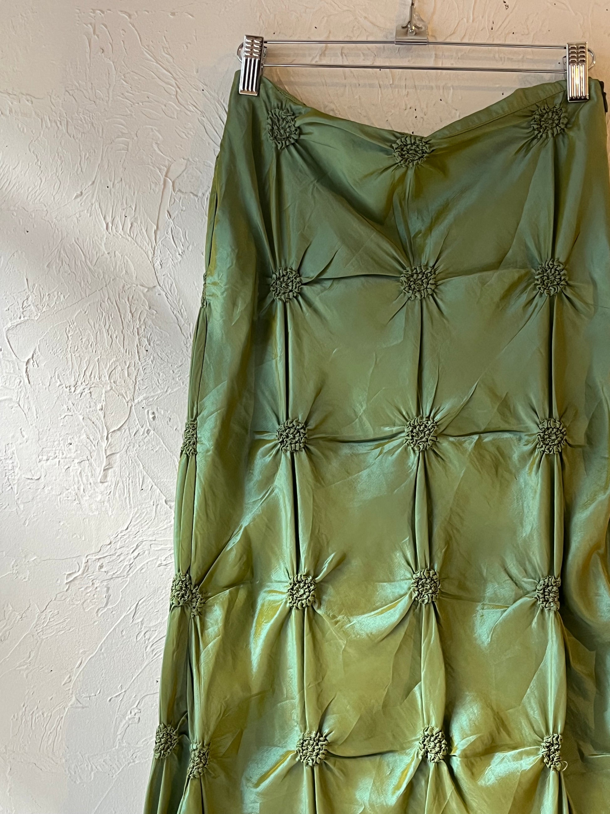 90s Shiny Green Scrunch Skirt / Small