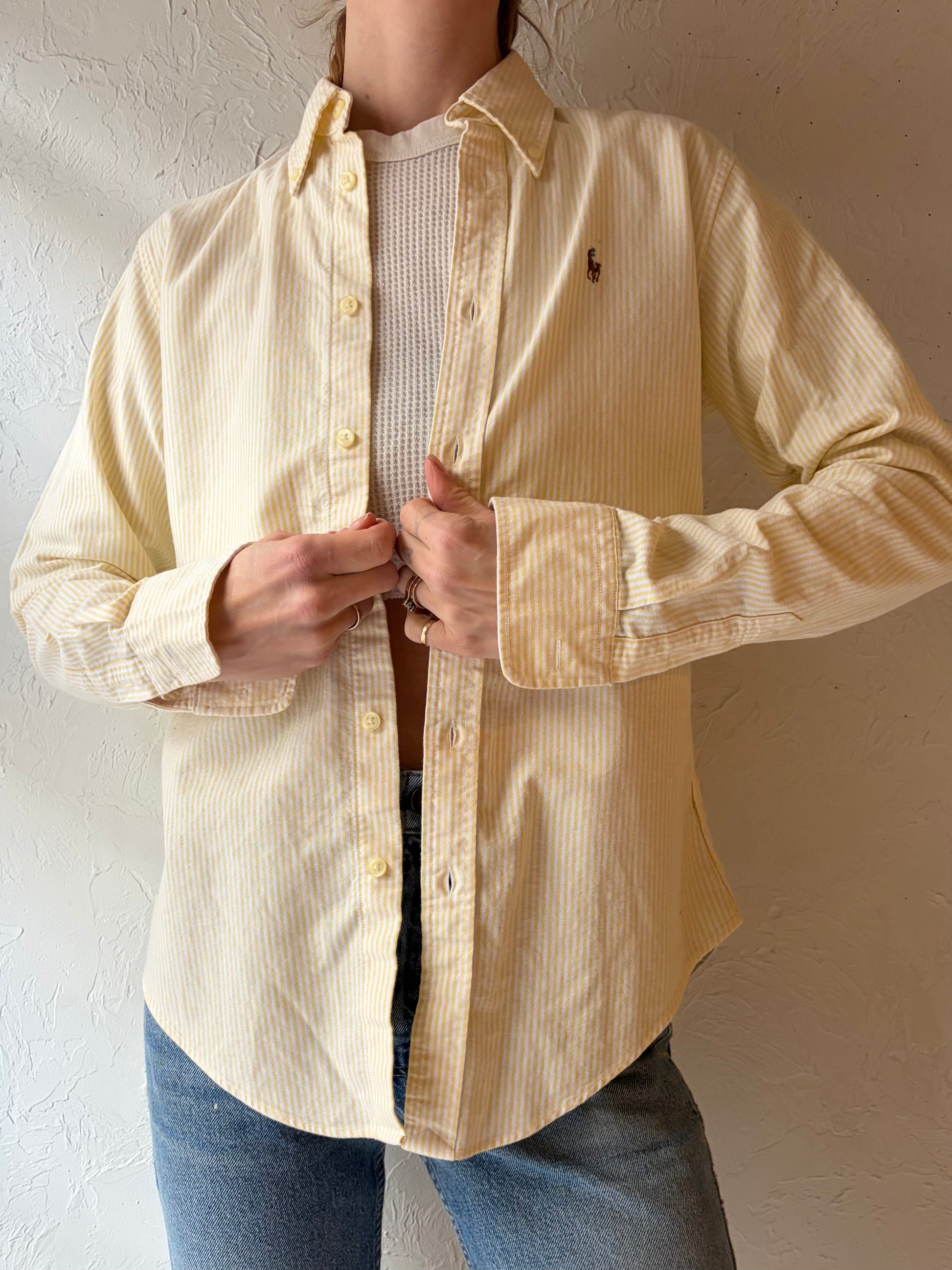 Y2k 'Ralph Lauren' Yellow Striped Button up Shirt / XS