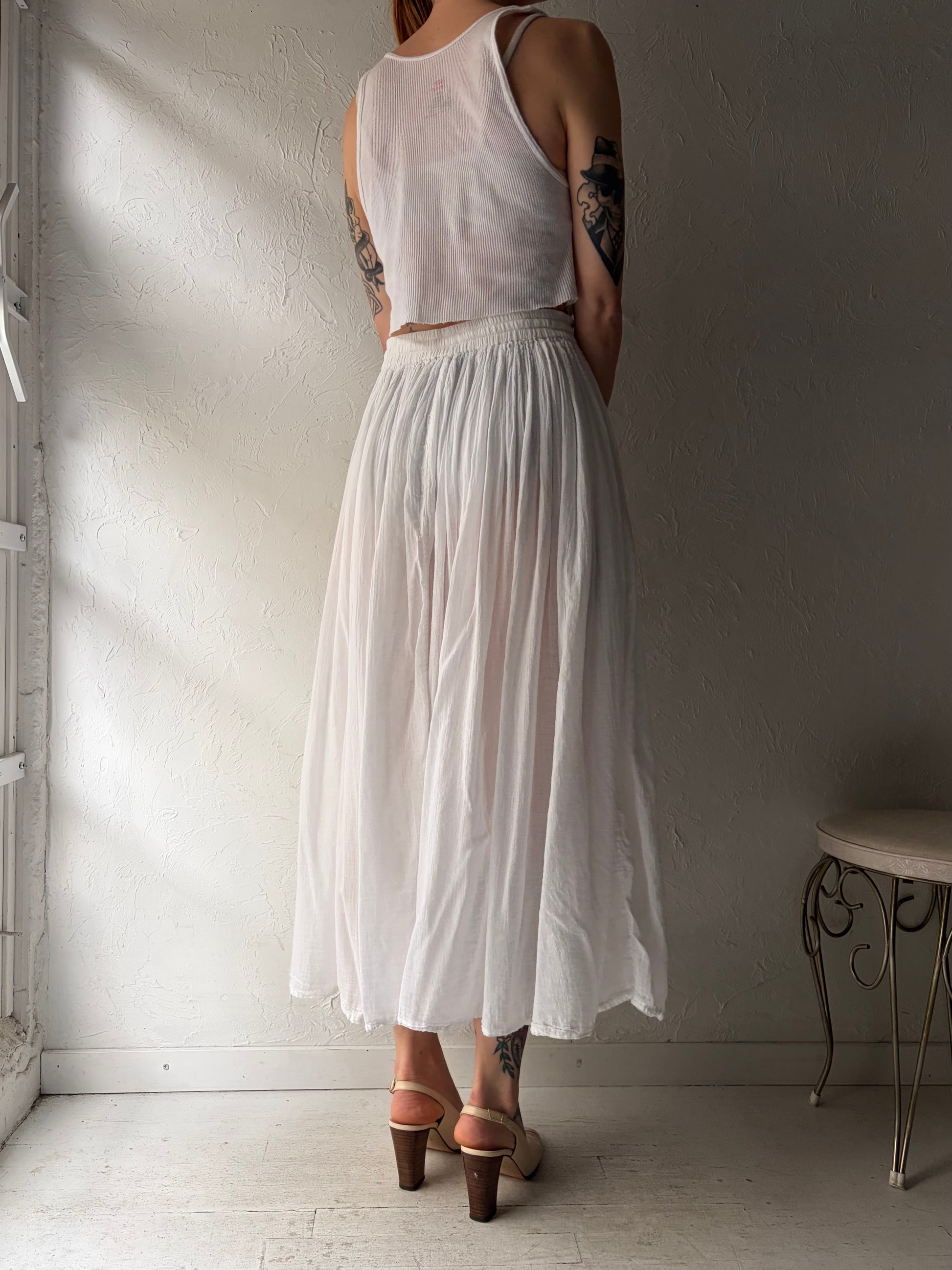 Y2k 'Karma Highway' White Sheer Cotton Skirt / Small