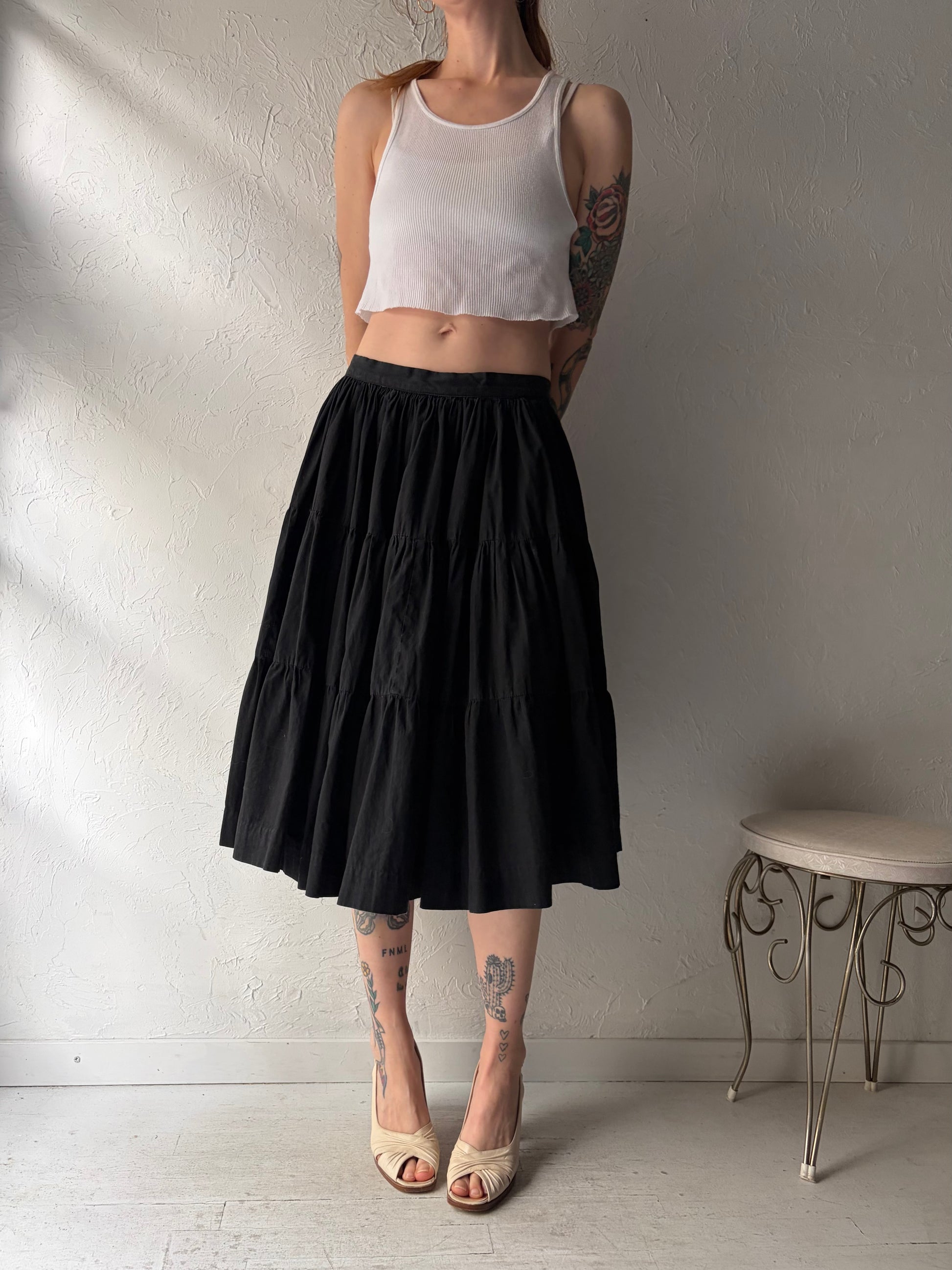 Vintage Black Tiered Midi Skirt / Small - Medium