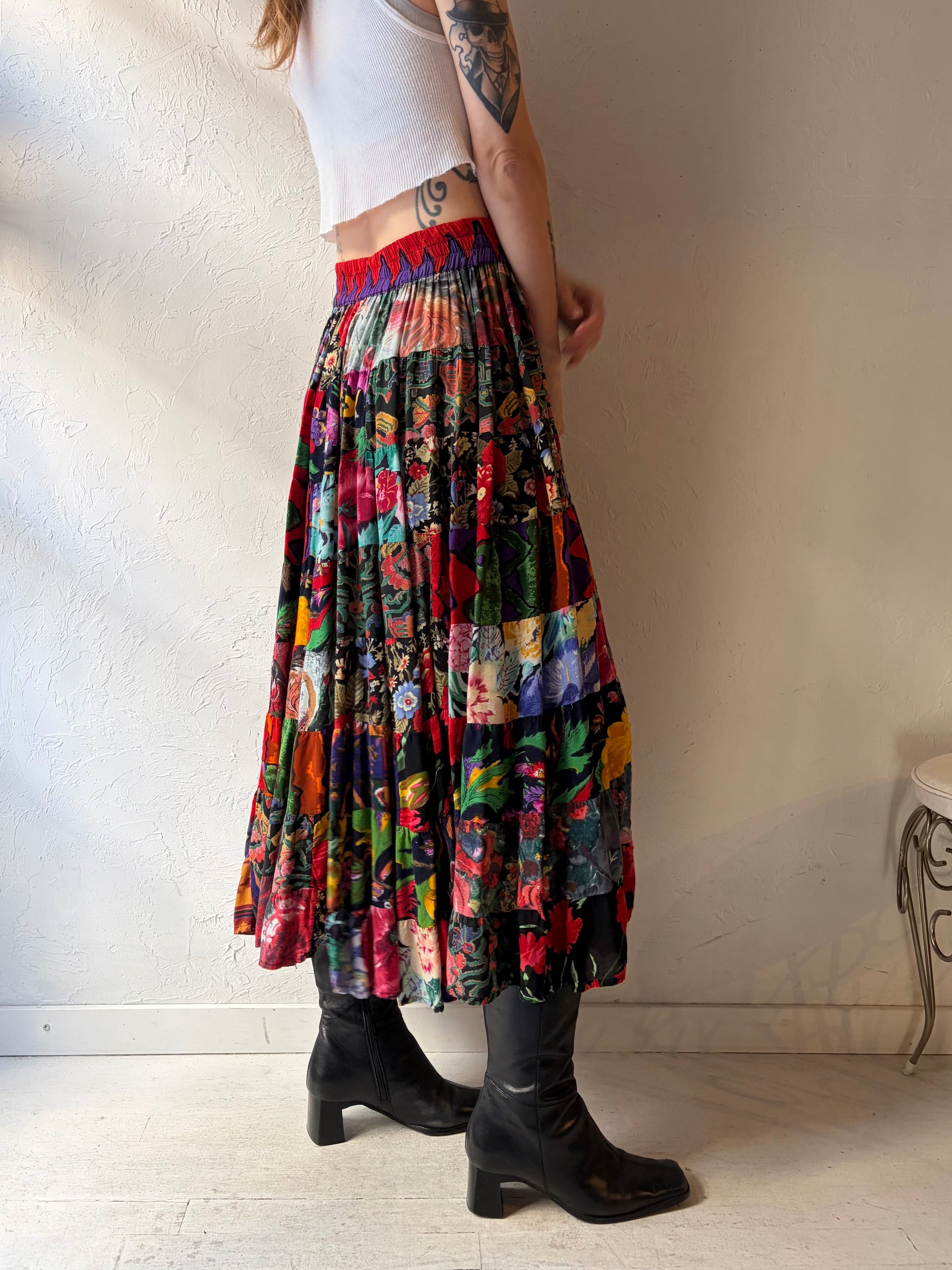 90s 'Billa' Patchwork Rayon Skirt / Small