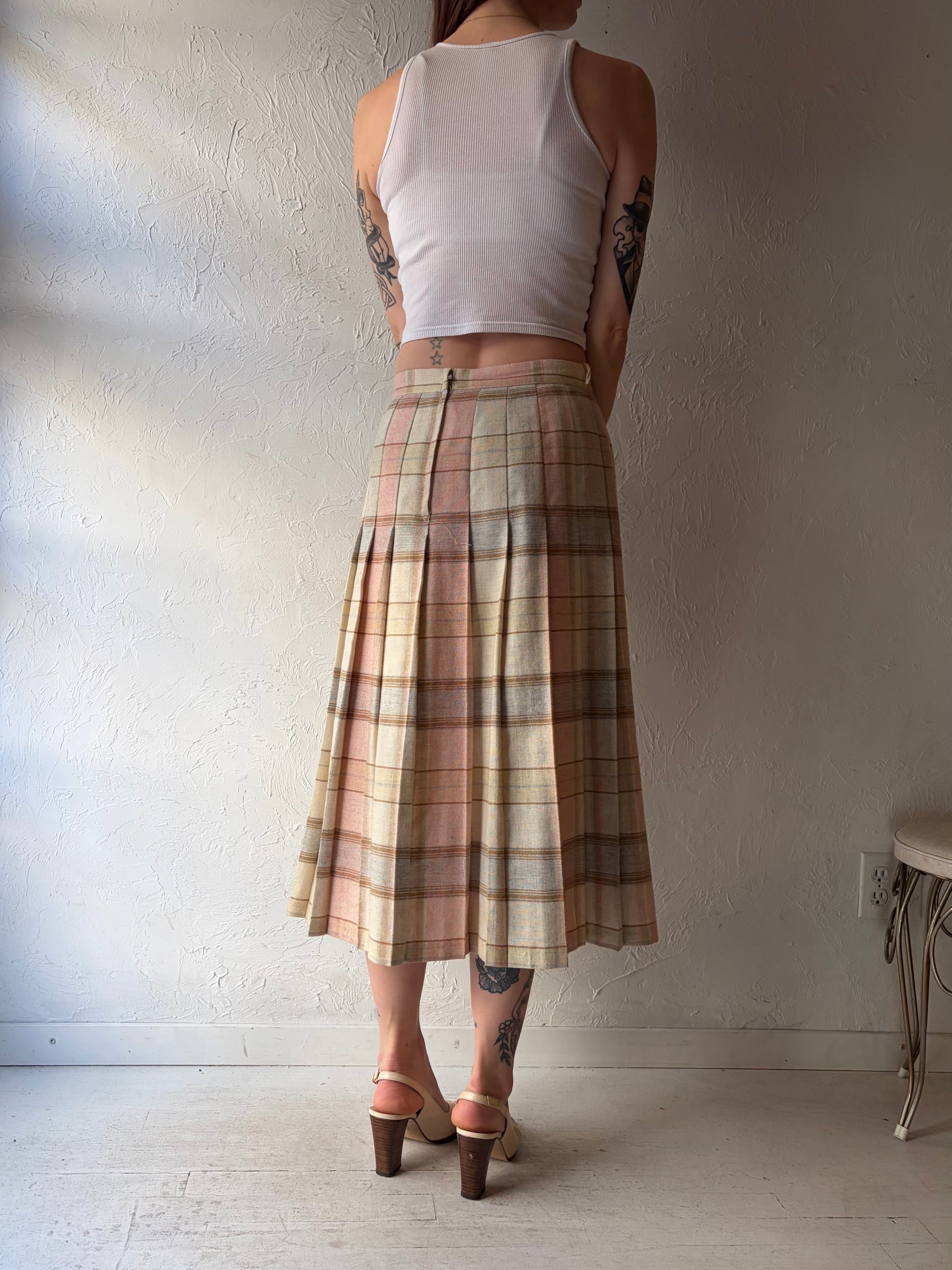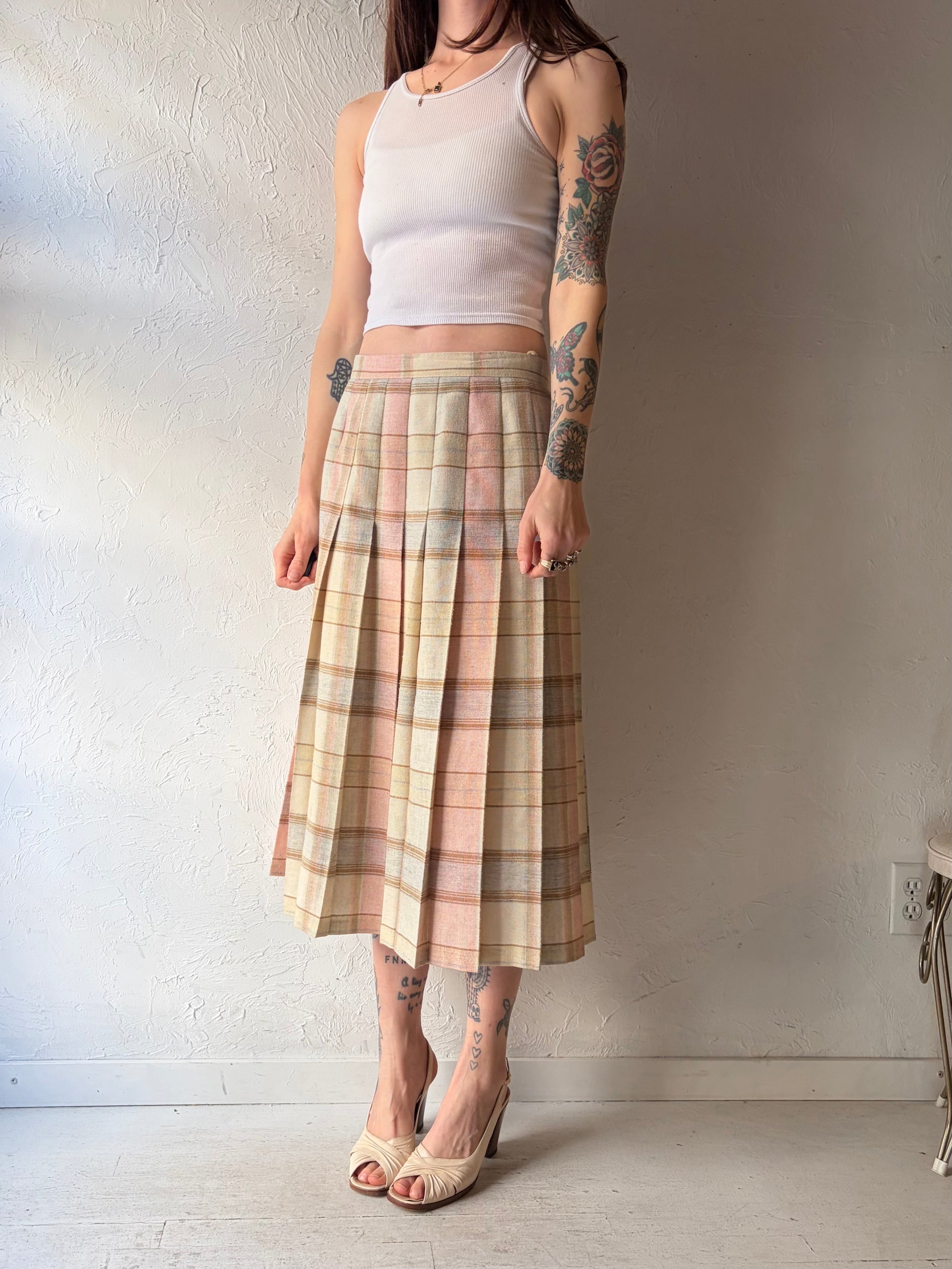 - Vintage Jupe A Gogo pastel plaid midi skirt
