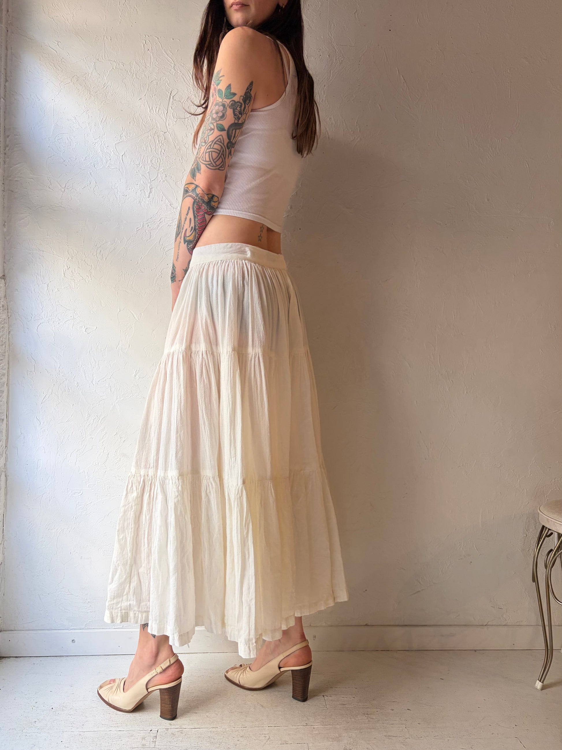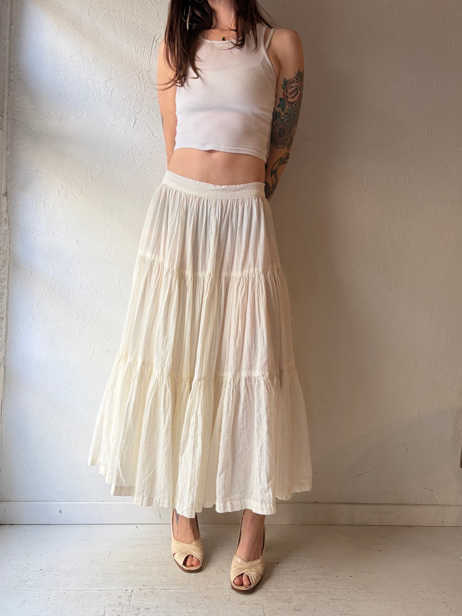 70s 'Martha Taos' White Broomstick Skirt / Small