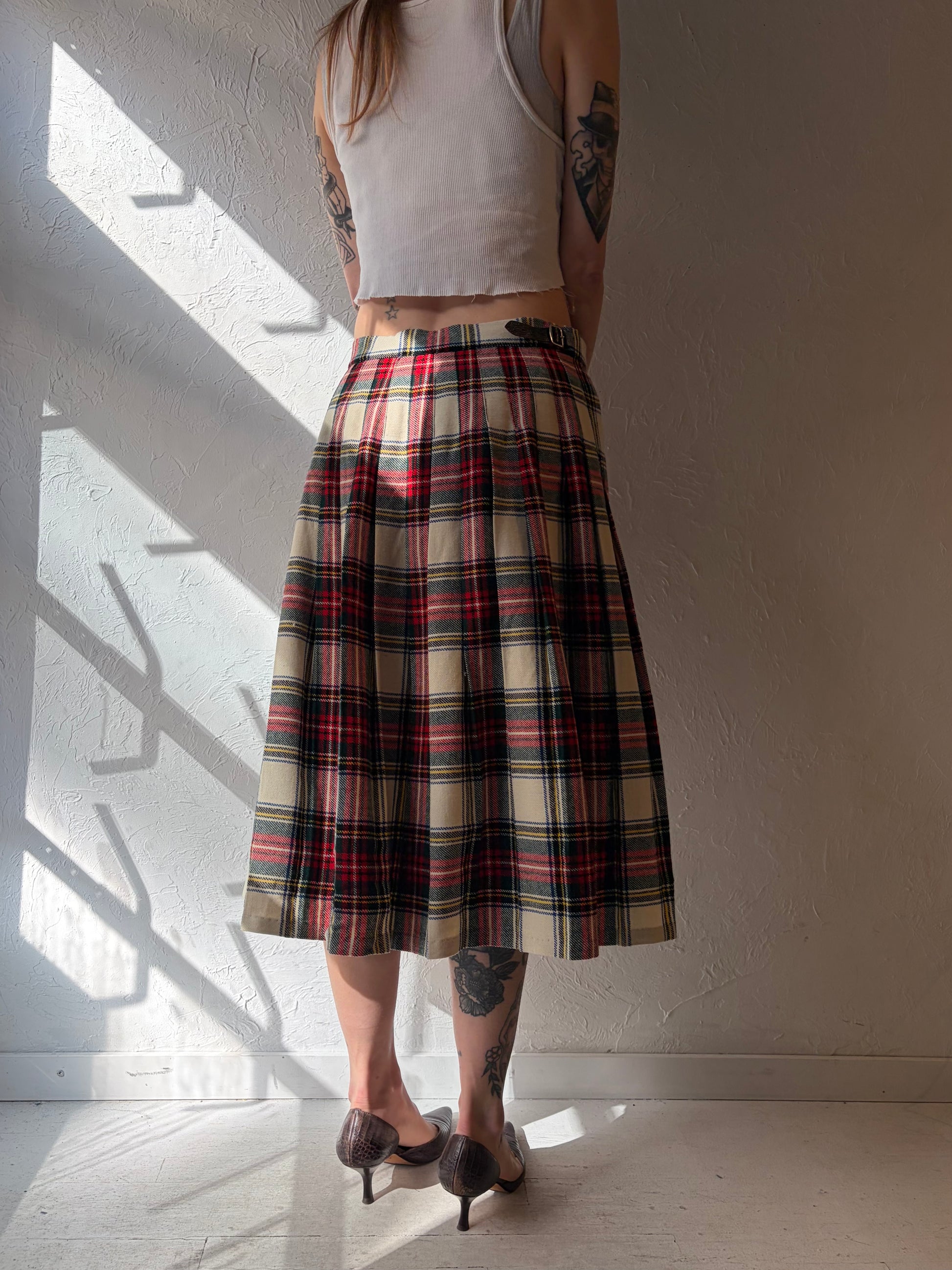 - Vintage 90s wool plaid pleated skirt