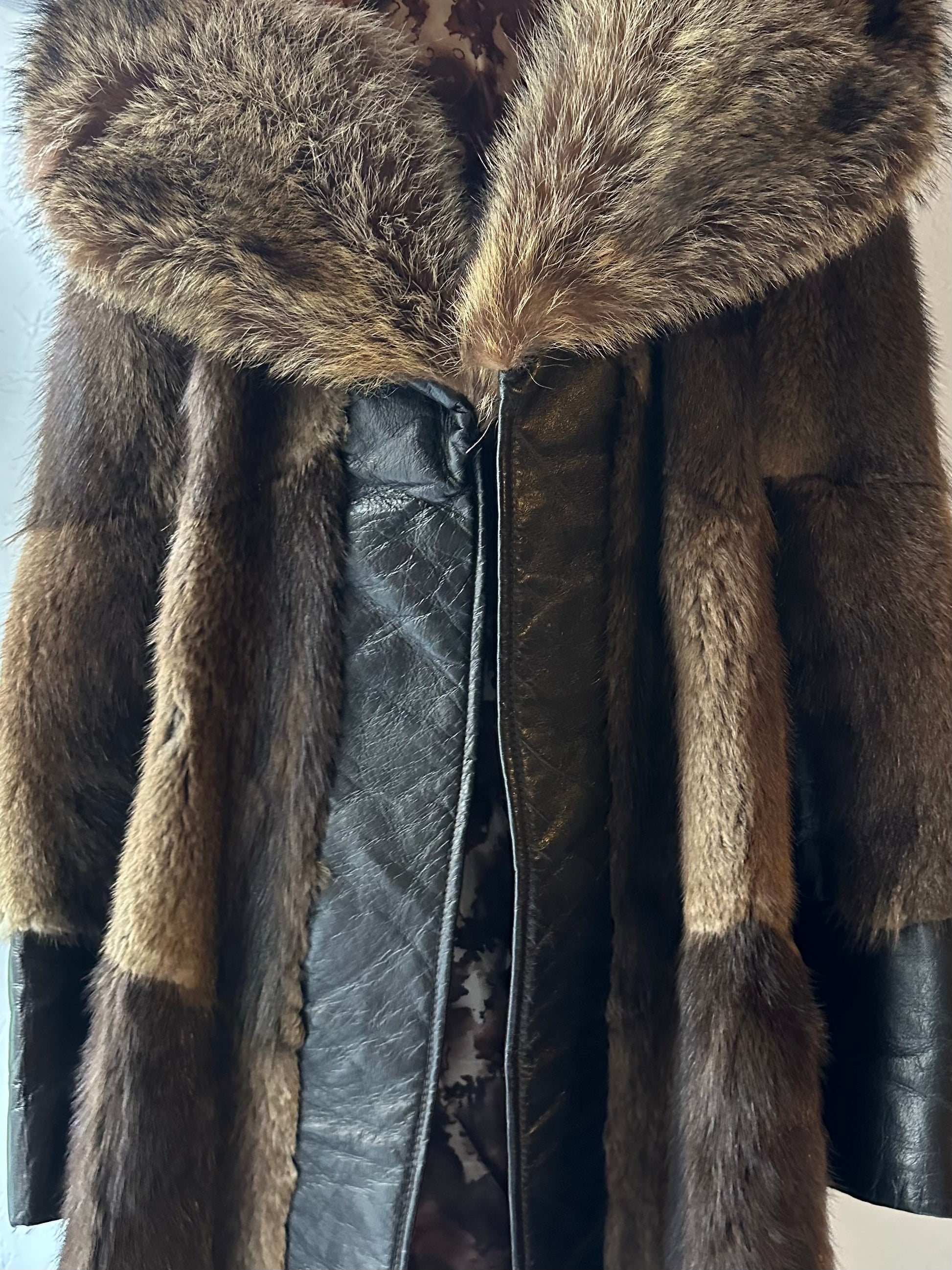 - Vintage fur coat with brown leather panels