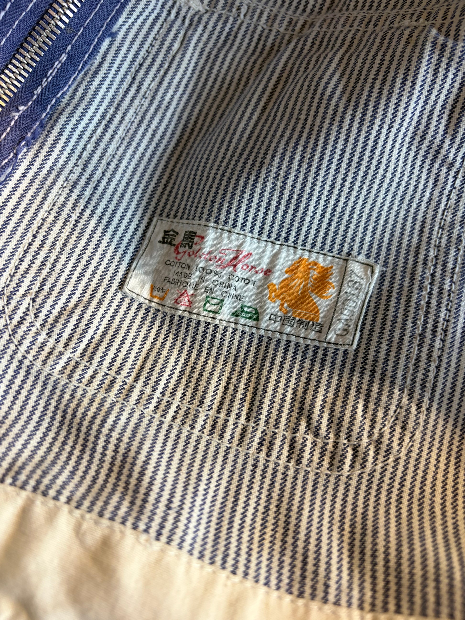 Vintage 'Golden Horse' Pin Striped Workwear Overalls / Medium
