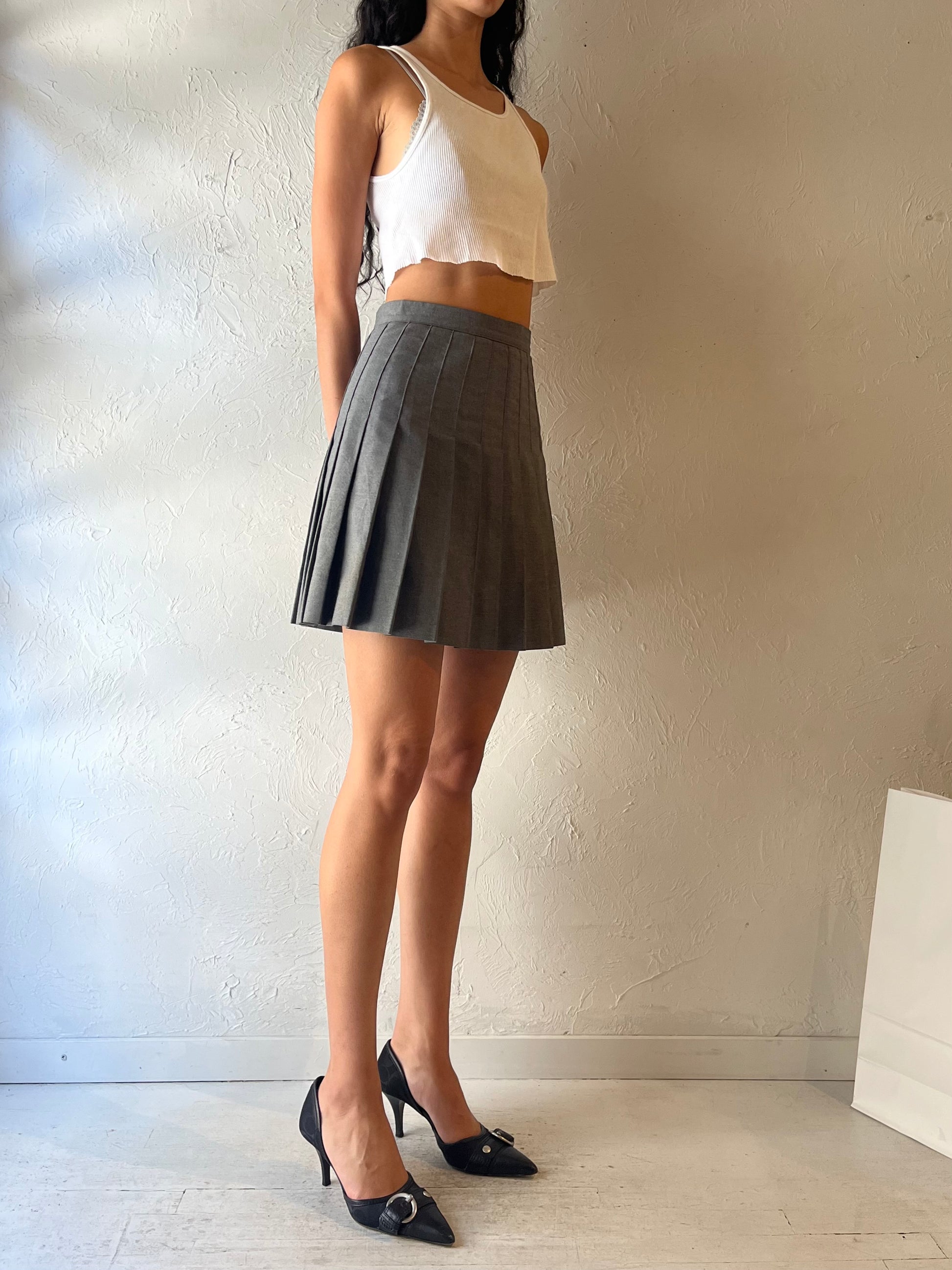 Vintage 'Top Marks' Gray Knit Pleated Mini Skirt / Small